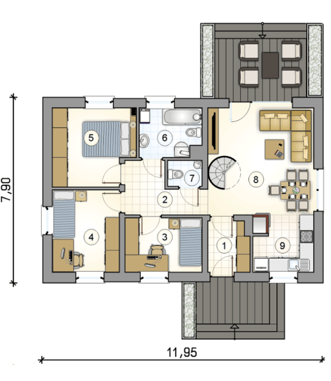 Bryła budynku pozwala na zmniejszenie całkowitych kosztów budowy względem bardziej złożonych konstrukcji. Duża strefa dzienna pozwala w komfortowych warunkach prowadzenie życia rodzinnego. Natomiast strefa sypialniana to zapewnia spokój i relaks.