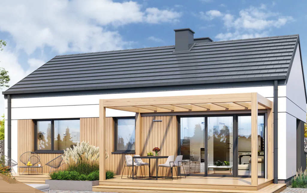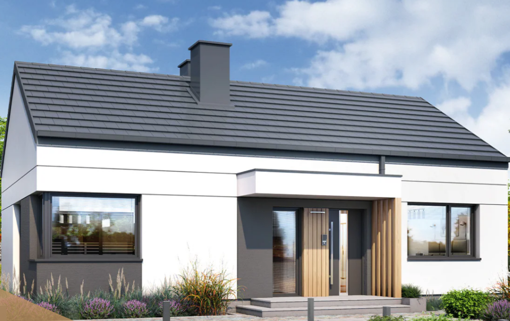 Oferujemy przytulny, nowoczesny dom parterowy o racjonalnie zagospodarowanej przestrzeni wewnętrznej. Efektowny wygląd zewnętrzny to zasługa pięknego połączenia materiałów i kolorów, które  podkreślają charakter domu.