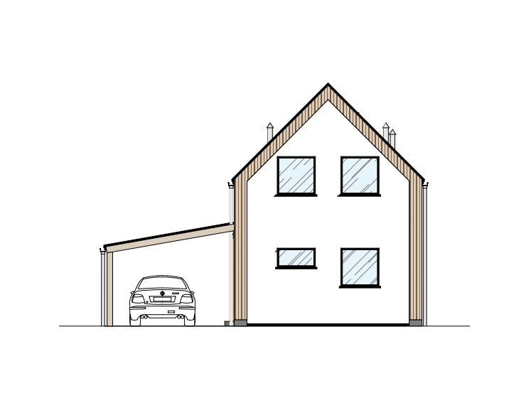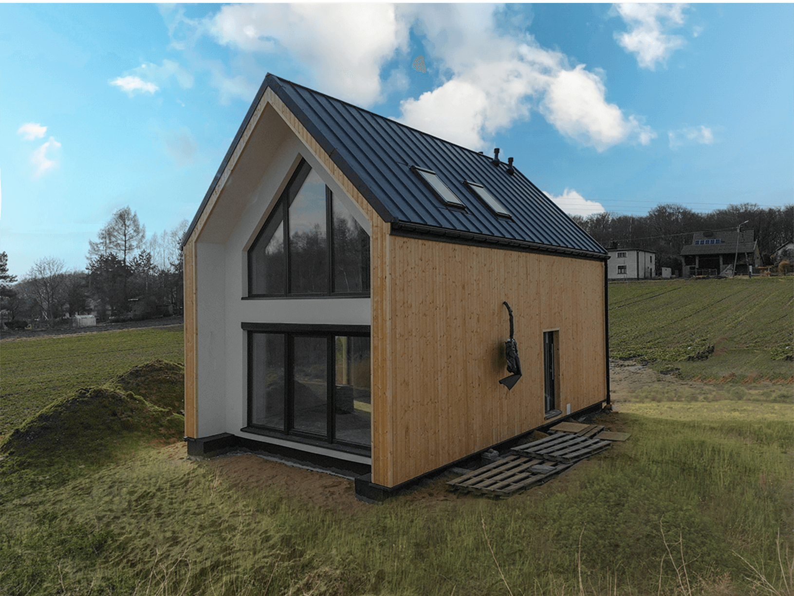 • konstrukcja domu obita płytą OSB3 12 mm oraz przykryta membraną wiatroizolacyjną - możliwość zmiany na płytę MFP lub Fermacell za dopłatą
