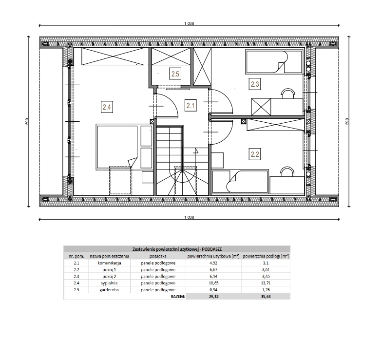 • Wszystkie pomieszczenia wykonane z płyty GK wykończone gładzią gipsową (standard Q3)