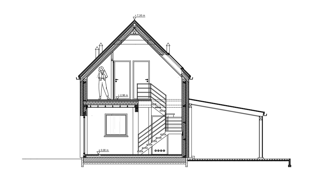 • Wykonanie elewacji: wełna fasadowa, wykończona tynkiem cienkowarstwowym sylikatowo-silikonowym, cokół wokół budynku wykonany tynkiem żywicznym