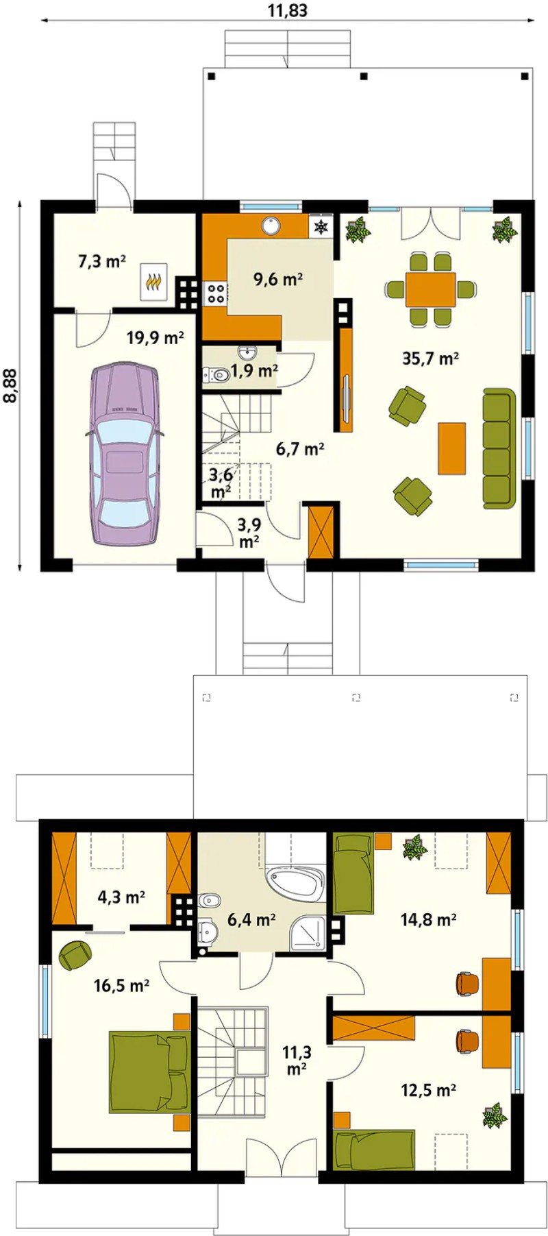 Galeria zdjęć Więcej zdjęć Opis projektu Przedstawiamy funkcjonalny dom szkieletowy MDDOM 89 o powierzchni użytkowej 76,96 m² (pow. po podłodze 89,04 m²) – idealne rozwiązanie...