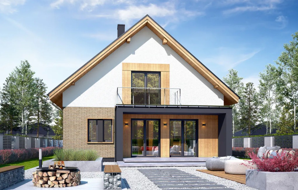 Projekt domu w technologii drewnianej szkieletowej.