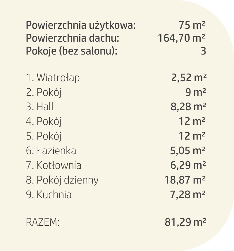 | Powierzchnia użytkowa: | 75 m² |