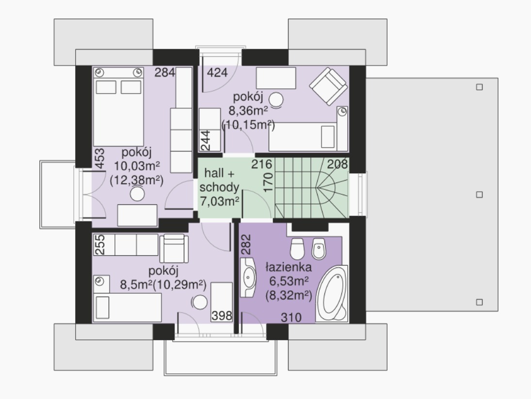 | Styl domu: | Do 70m zabudowy, Nowoczesny, Wygodny |