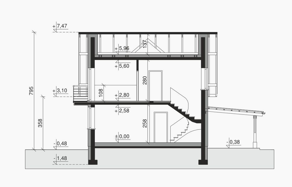 Galeria zdjęć Więcej zdjęć Opis projektu Przedstawiamy funkcjonalny dom szkieletowy MDDOM 89 o powierzchni użytkowej 76,96 m² (pow. po podłodze 89,04 m²) – idealne rozwiązanie...
