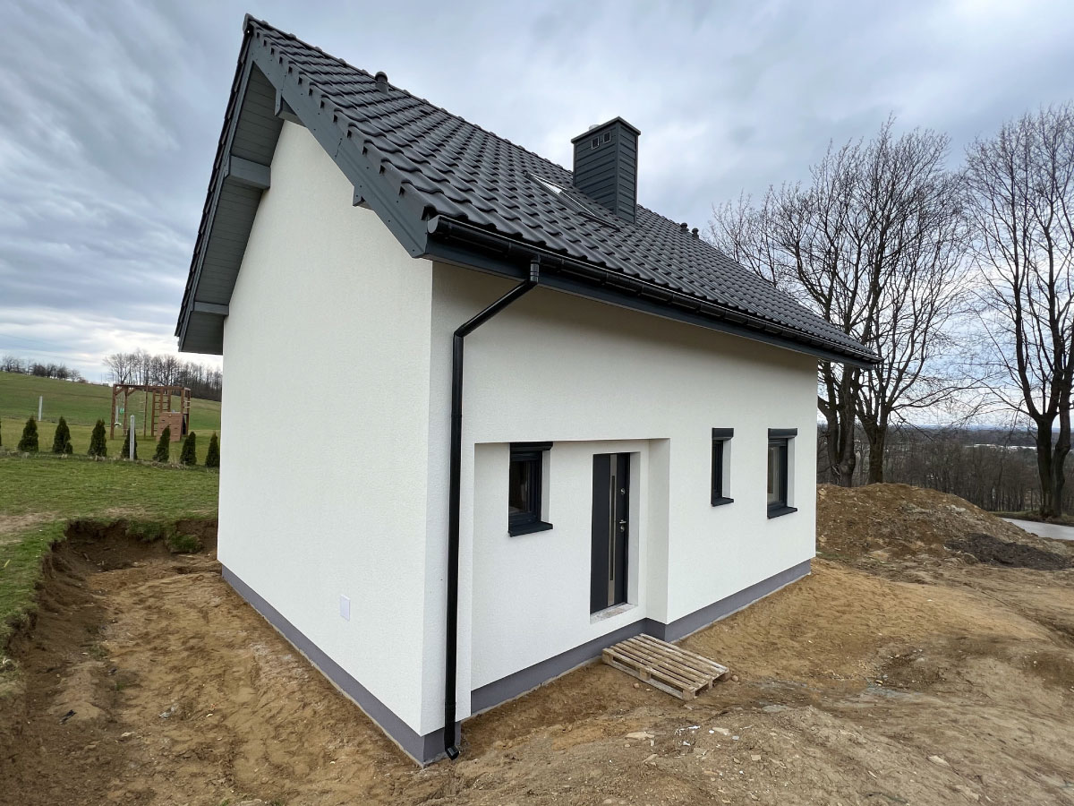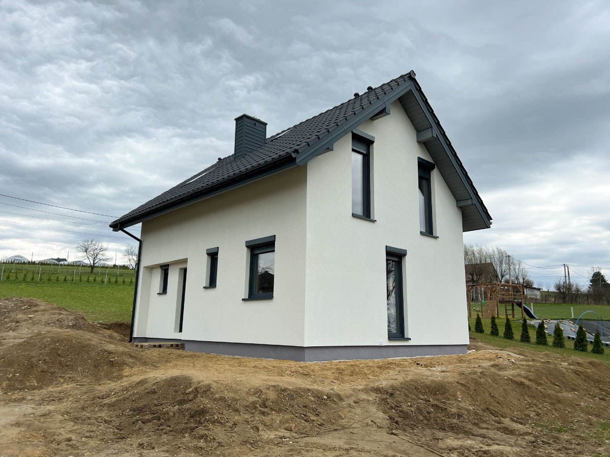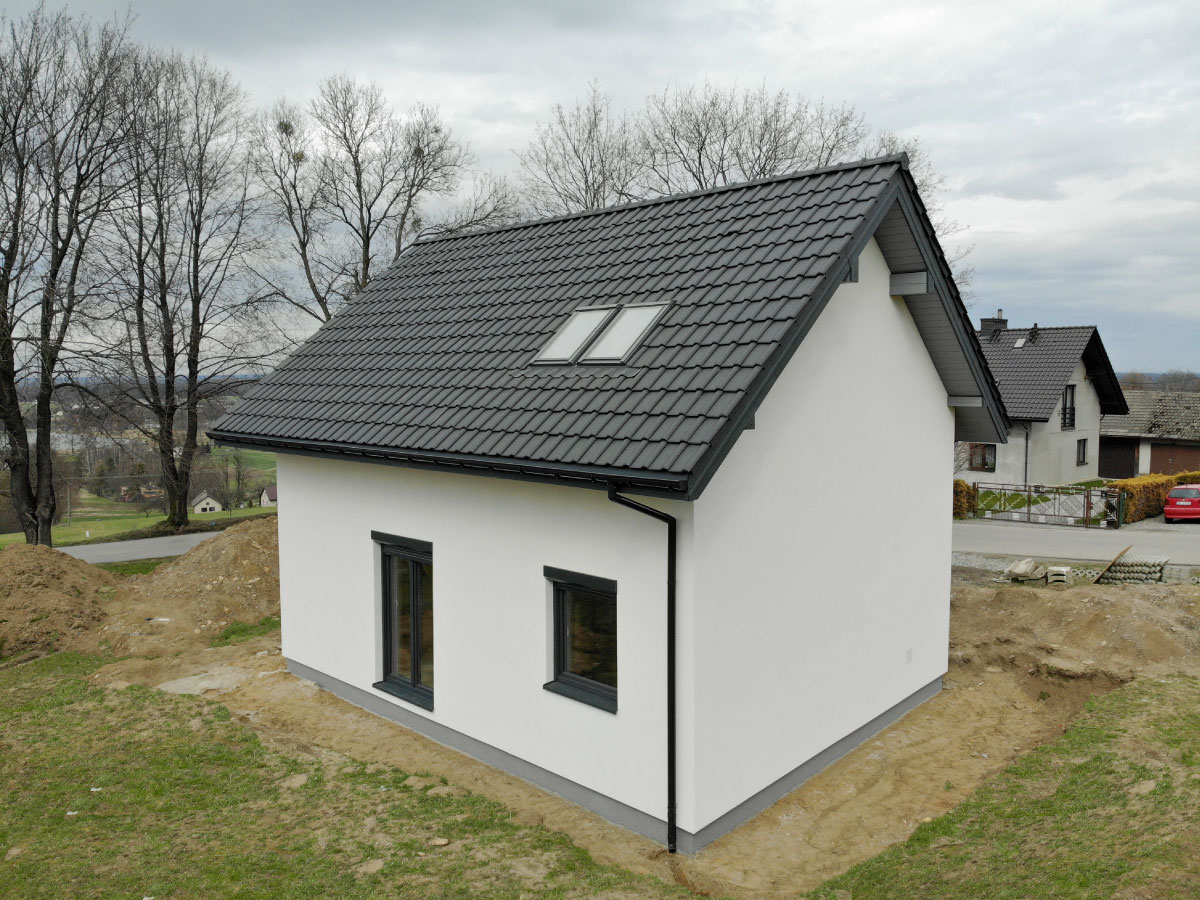Galeria zdjęć Więcej zdjęć Opis projektu Inwestycja obejmowała wybudowanie domu szkieletowego parterowego o metrażu 52,74m2 w miejscowości Tworóg. Projekt domu zakładał 3 pokoje i łazienkę....
