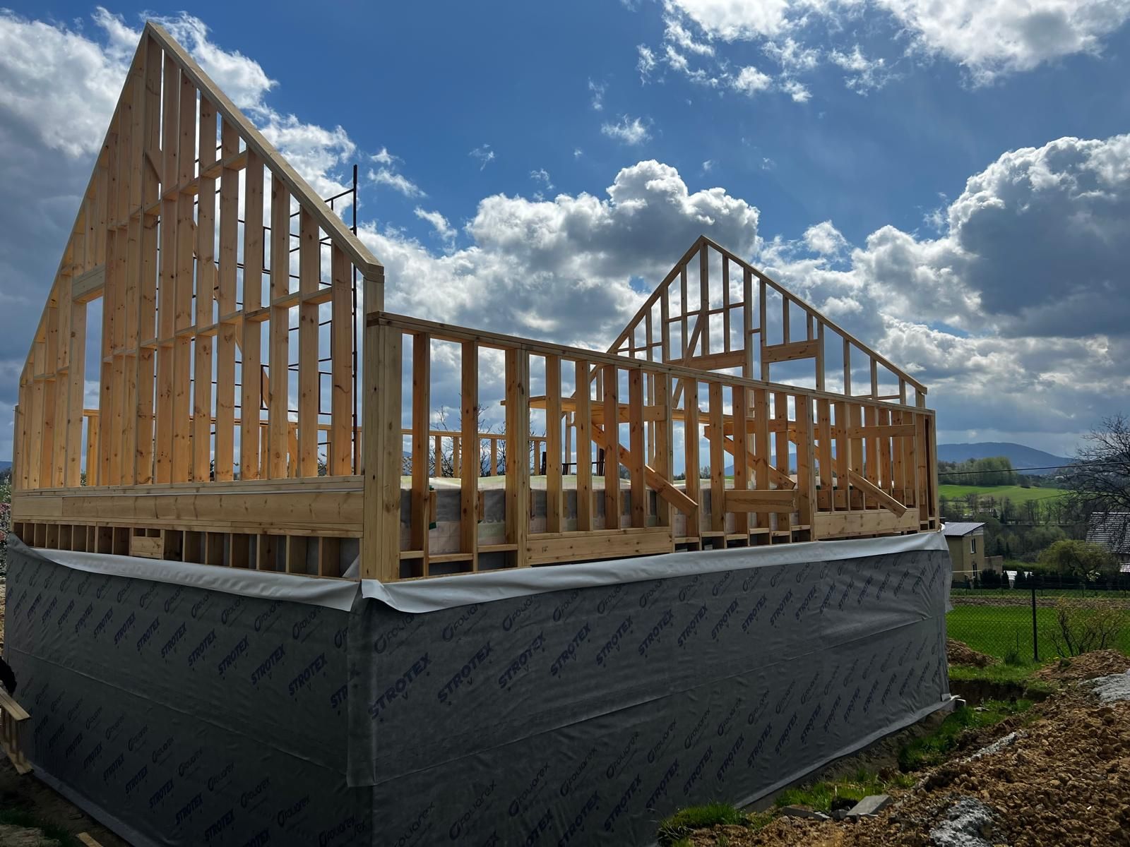 Dom w konstrukcji szkieletowej drewnianej.