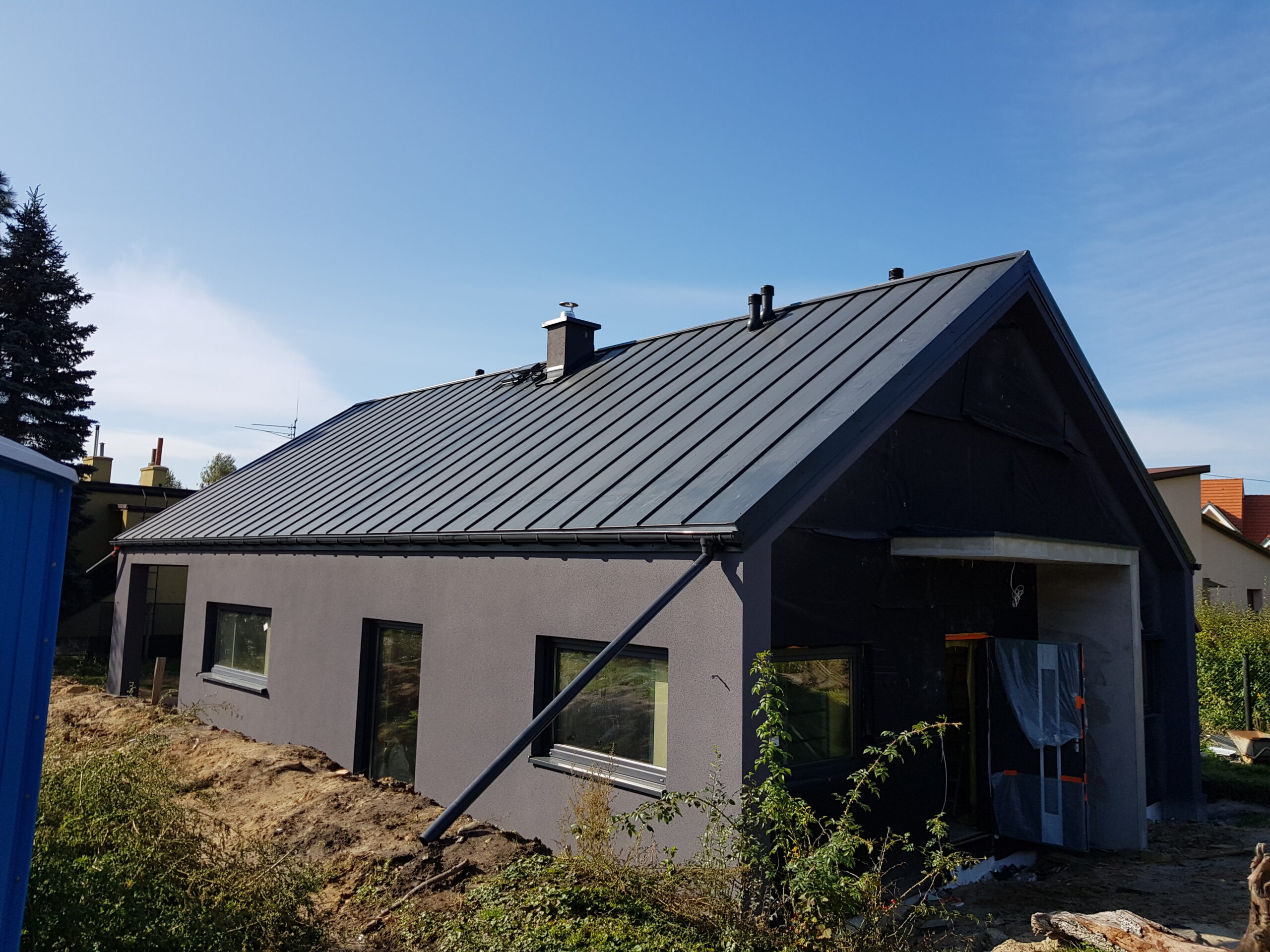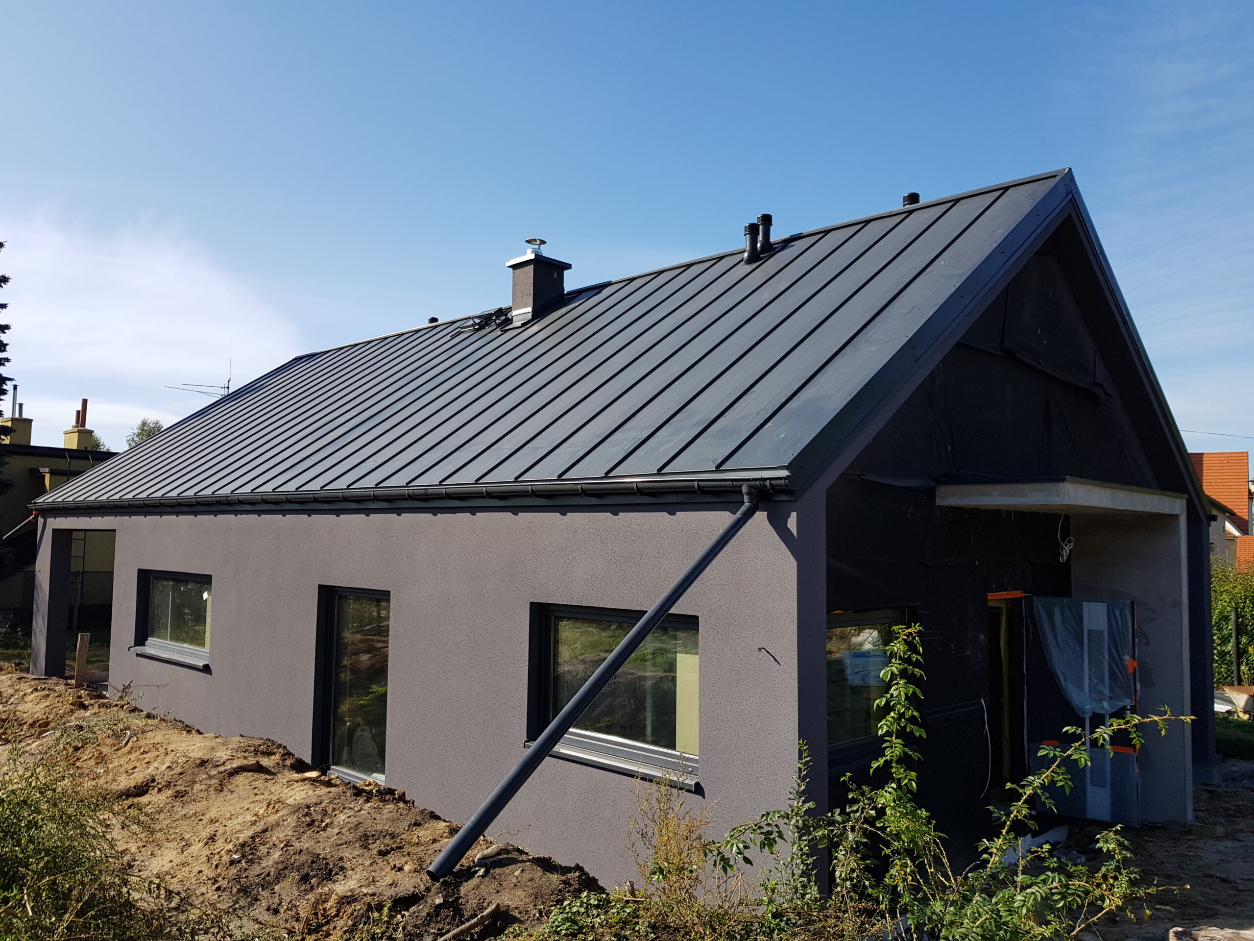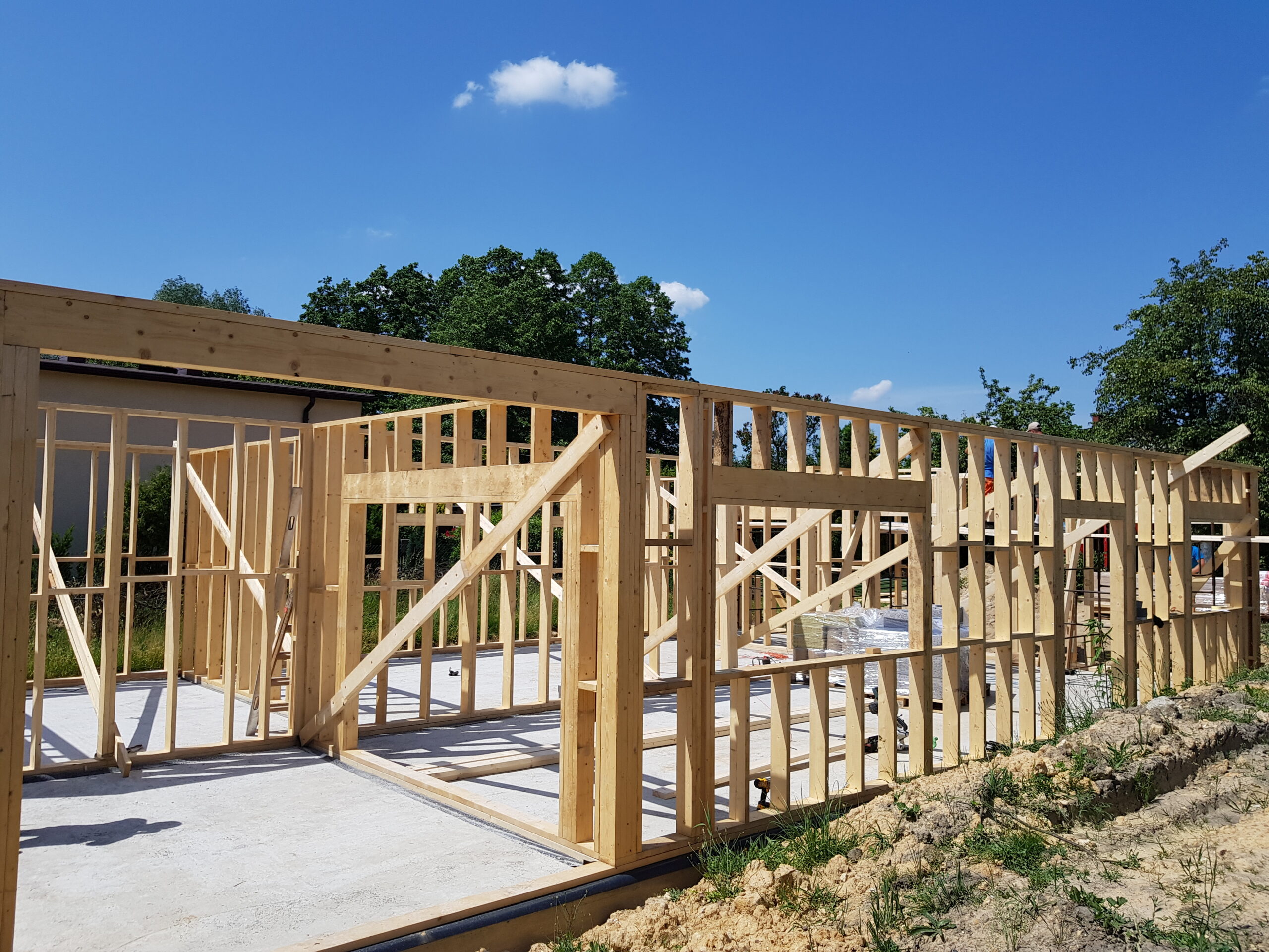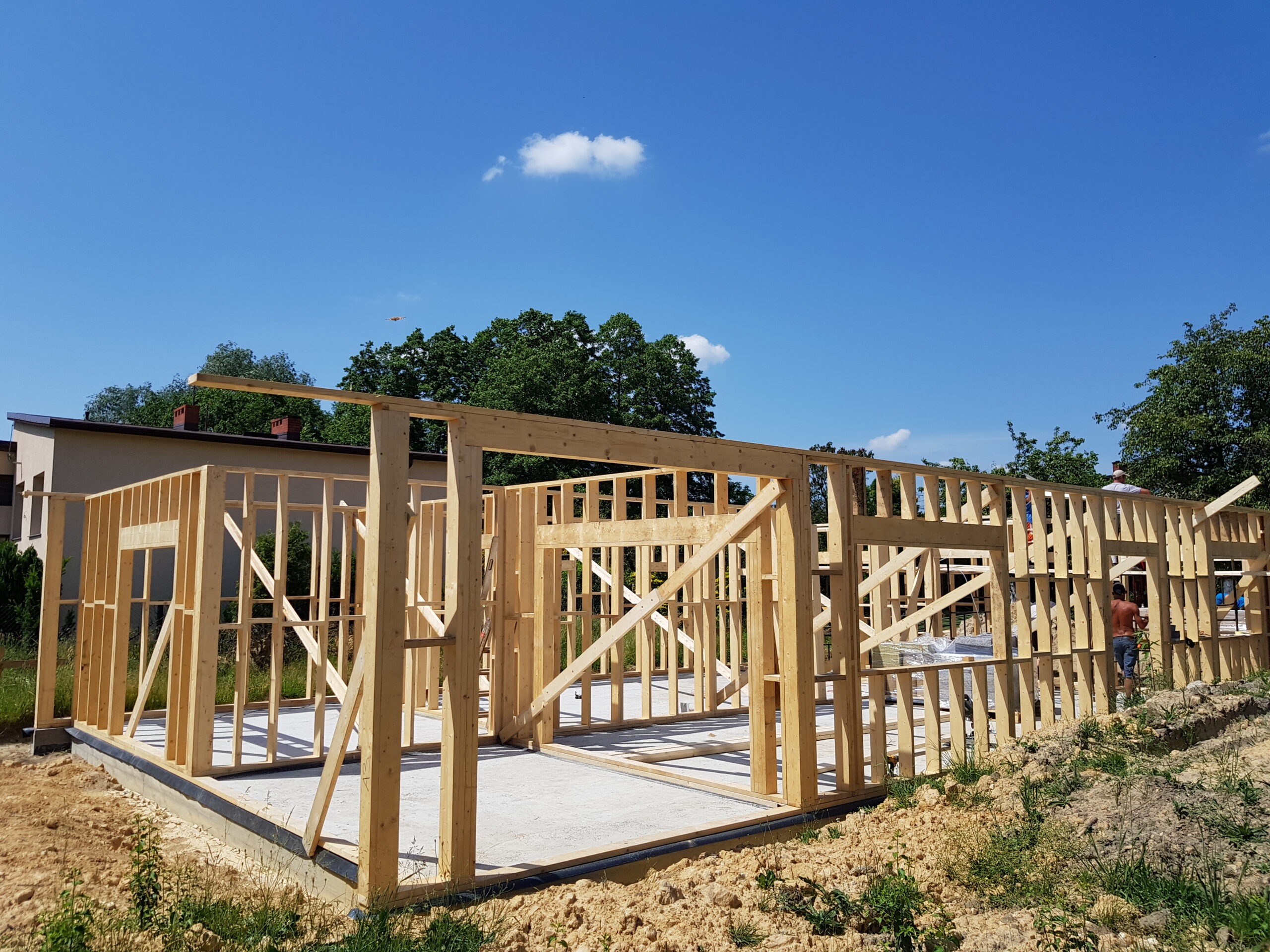 Inwestycja obejmowała wybudowanie domu szkieletowego parterowego o metrażu 100m2 w miejscowości Katowice. Projekt domu zakładał 2 pokoje i łazienkę. Budowę domu zakończyliśmy w roku 2019 w stanie deweloperskim. Inwestycja wzorowana na wzór projektu Homekoncept 44.