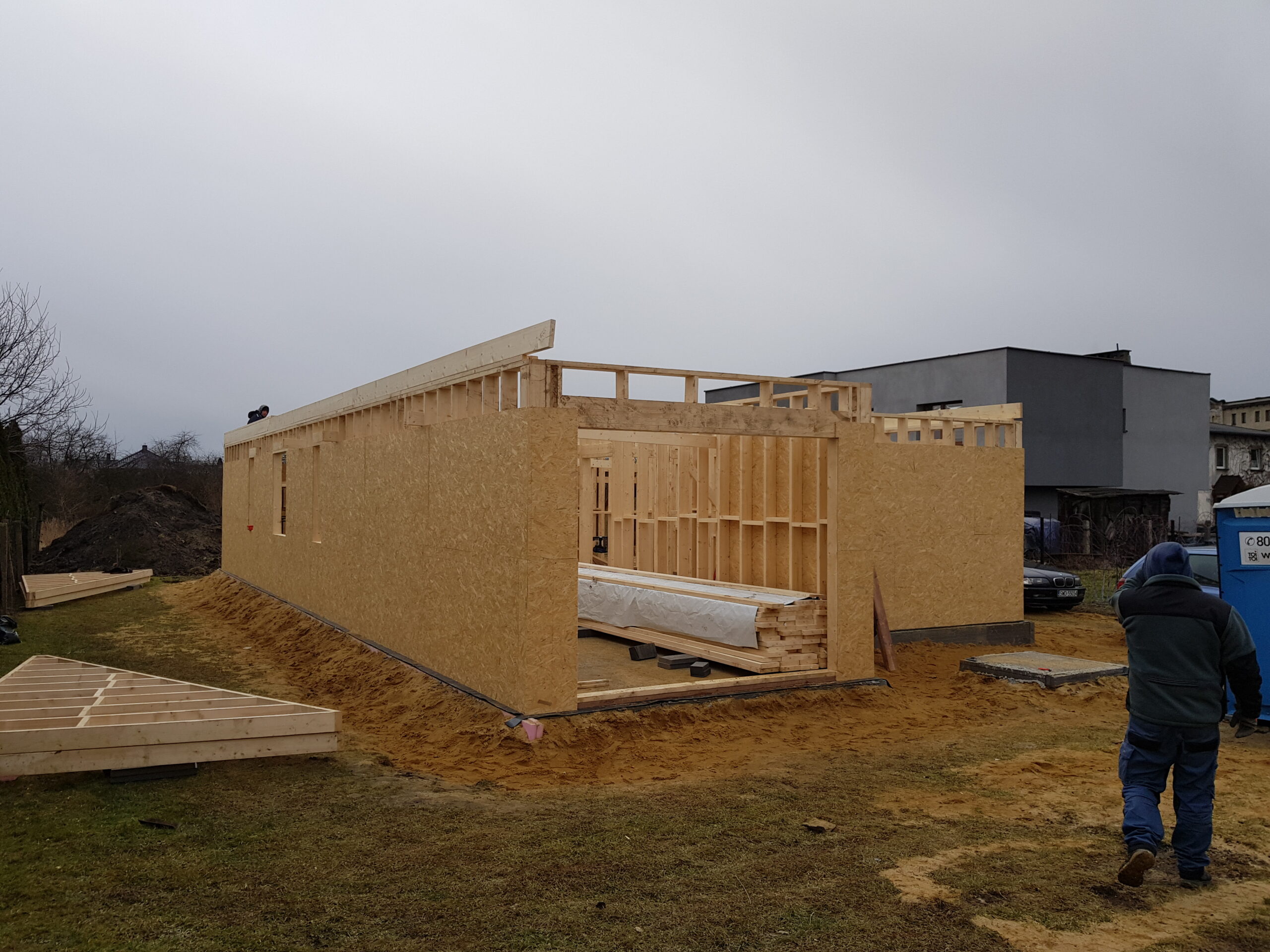 Inwestycja obejmowała wybudowanie domu szkieletowego parterowego o metrażu 100m2 w miejscowości Knurów. Projekt domu zakładał 3 pokoje, łazienkę i garaż. Budowę domu zakończyliśmy w roku 2020 w stanie deweloperskim. Inwestycja wzorowana na wzór projektu indywidualnego.