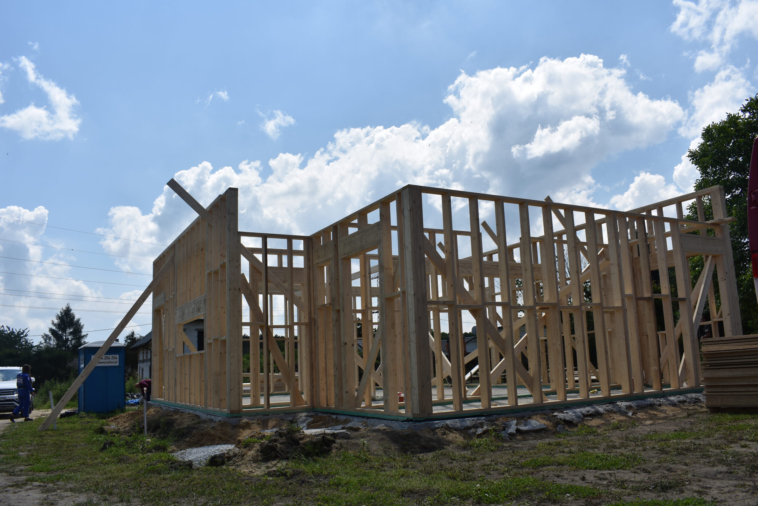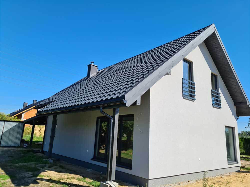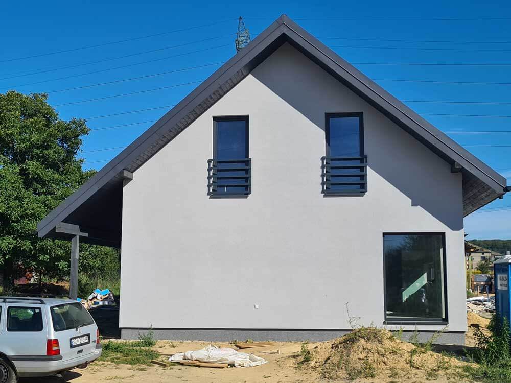 Inwestycja obejmowała wybudowanie domu szkieletowego parterowego o metrażu 123,25 m2 w Łaziskach Górnych. Projekt domu zakładał 3 pokoje i łazienkę. Budowę domu zakończyliśmy w roku 2020 w stanie deweloperskim. Inwestycja wzorowana jest na wzór projektu domu w Cytryńcach (W).