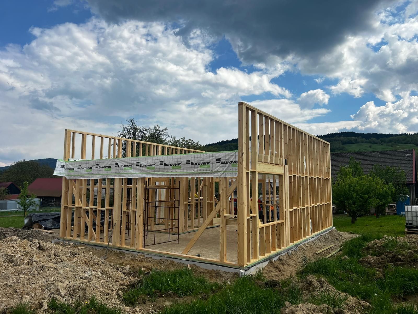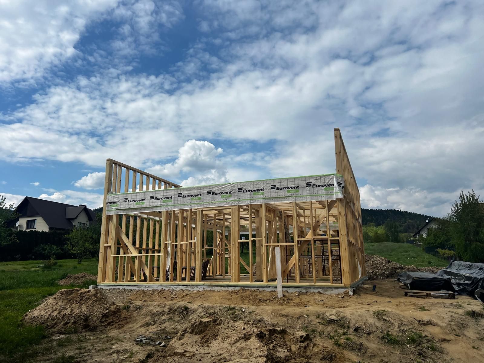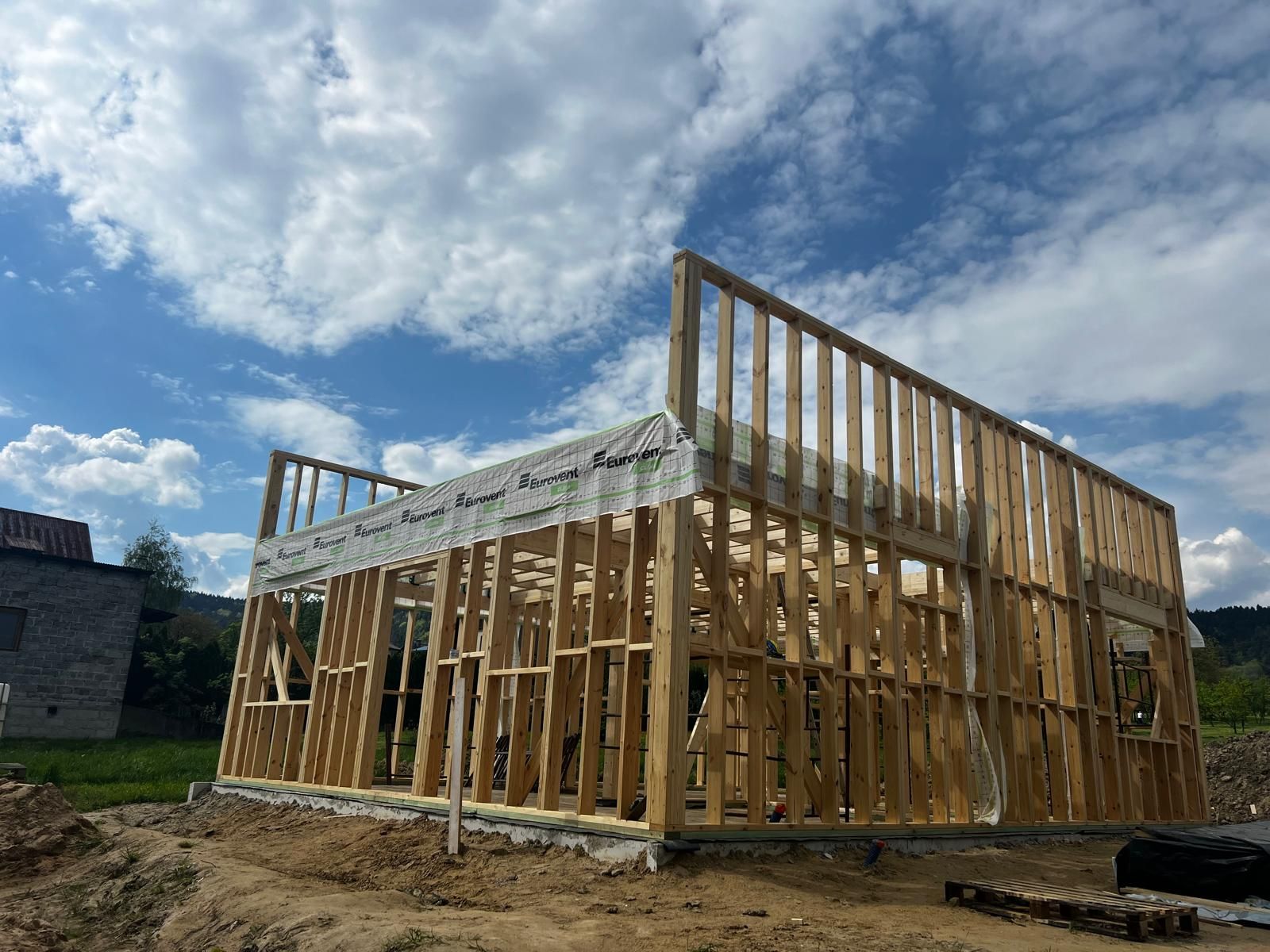 Galeria zdjęć Więcej zdjęć Opis projektu Inwestycja obejmowała wybudowanie domu szkieletowego parterowego o metrażu 52,74m2 w miejscowości Tworóg. Projekt domu zakładał 3 pokoje i łazienkę....