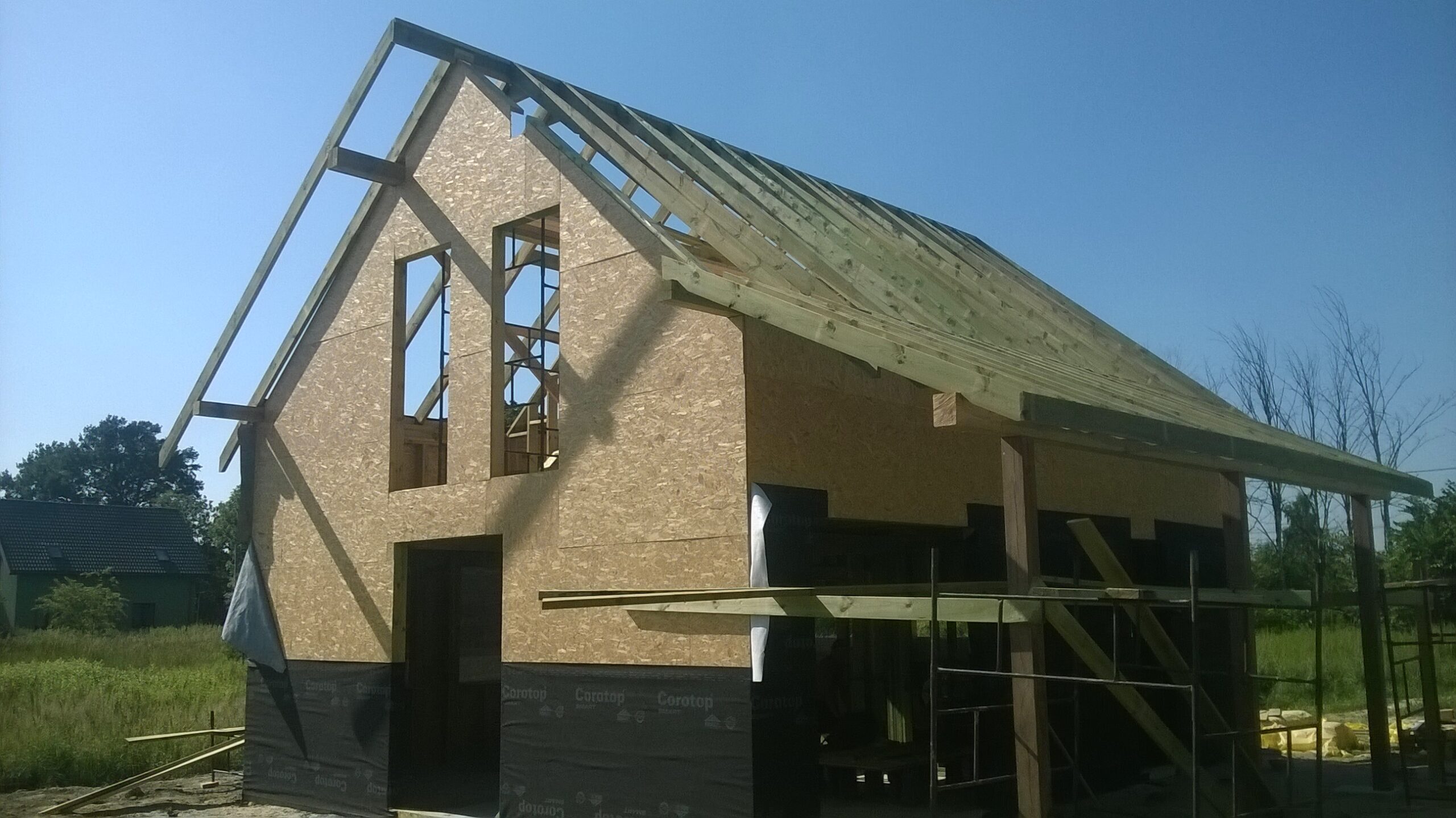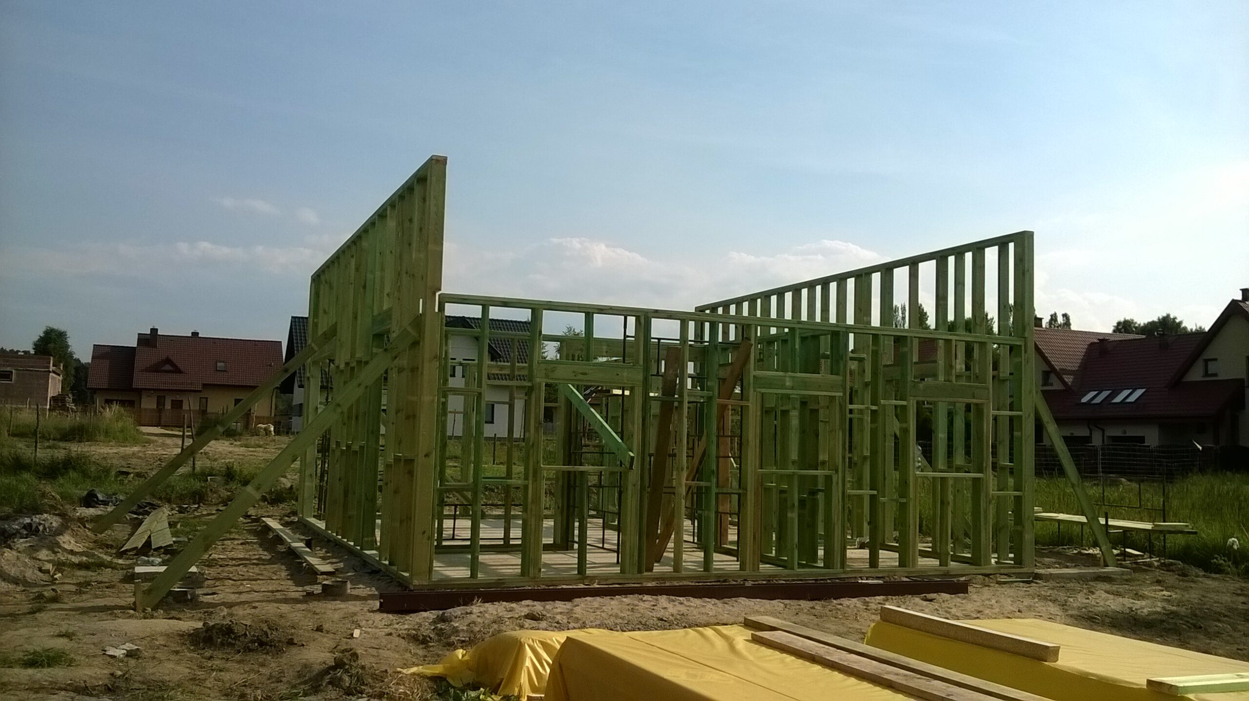 Inwestycja obejmowała wybudowanie domu szkieletowego piętrowego o metrażu 110m2 w miejscowości Mysłowice. Projekt domu zakładał 3 pokoje i 2 łazienki. Budowę domu zakończyliśmy w roku 2014 w stanie surowym otwartym. Inwestycja wzorowana na wzór projektu indywidualnego.