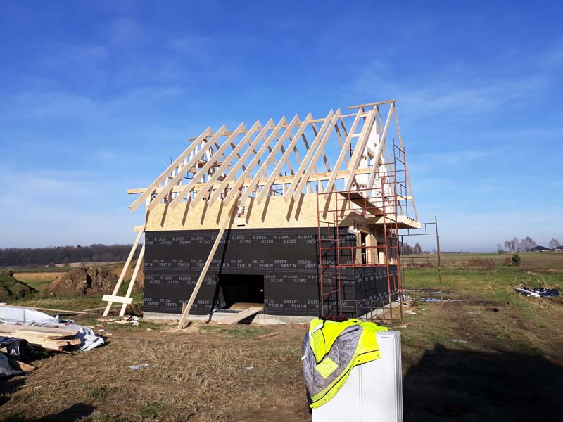 Inwestycja obejmowała wybudowanie domu szkieletowego piętrowego o metrażu 67,57m2 w miejscowości Rogów. Projekt domu zakładał 3 pokoje i łazienkę. Budowę domu zakończyliśmy w roku 2017 w stanie deweloperskim. Inwestycja wzorowana na wzór projektu Oleńka.