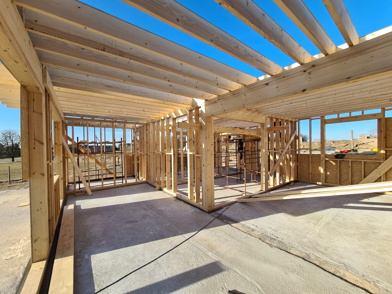 Galeria zdjęć Więcej zdjęć Opis projektu Inwestycja obejmowała wybudowanie domu szkieletowego parterowego o metrażu 52,74m2 w miejscowości Tworóg. Projekt domu zakładał 3 pokoje i łazienkę....