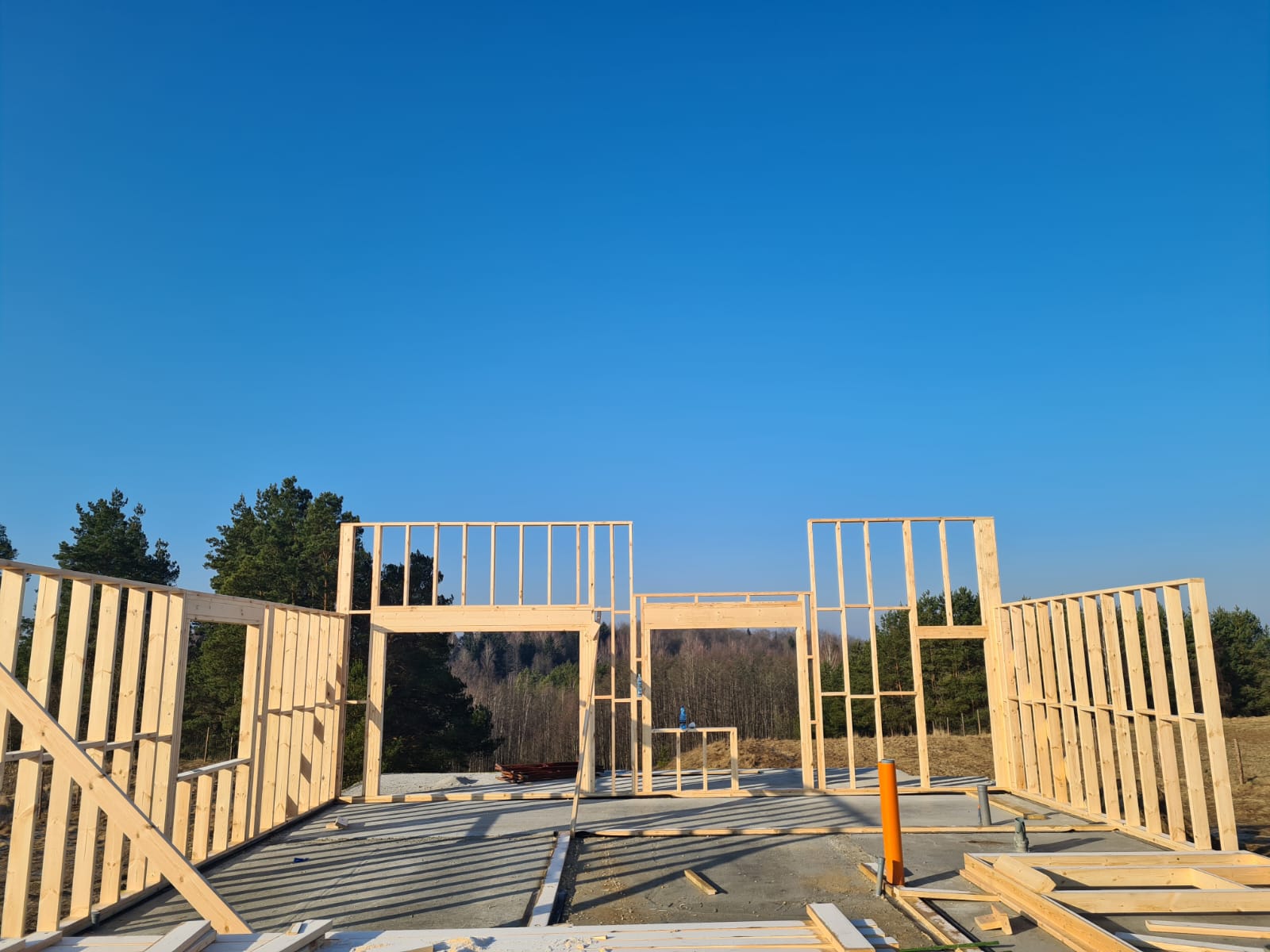 Galeria zdjęć Więcej zdjęć Opis projektu Inwestycja obejmowała wybudowanie domu szkieletowego parterowego o metrażu 100m2 w miejscowości Katowice. Projekt domu zakładał 2 pokoje i łazienkę....