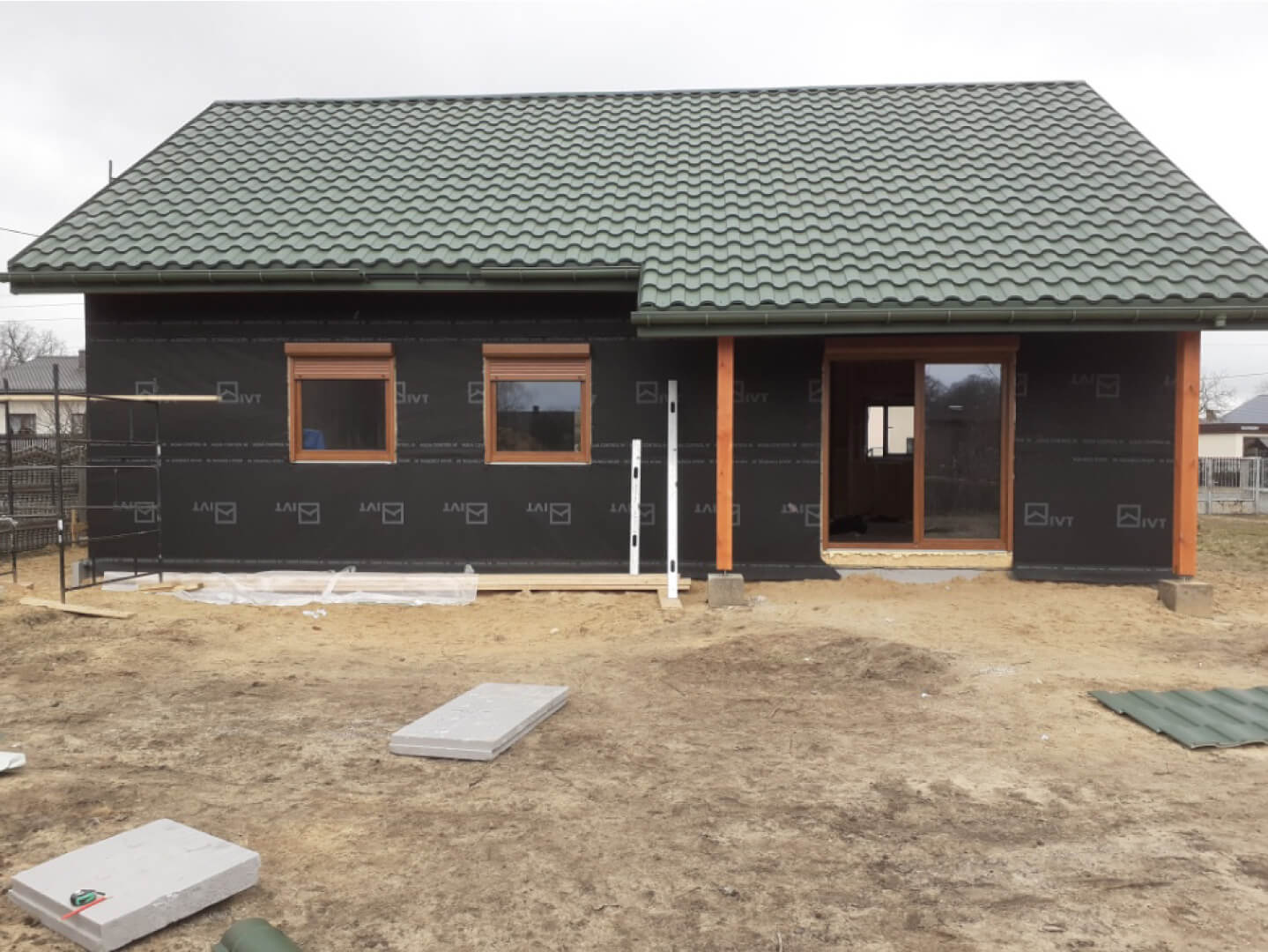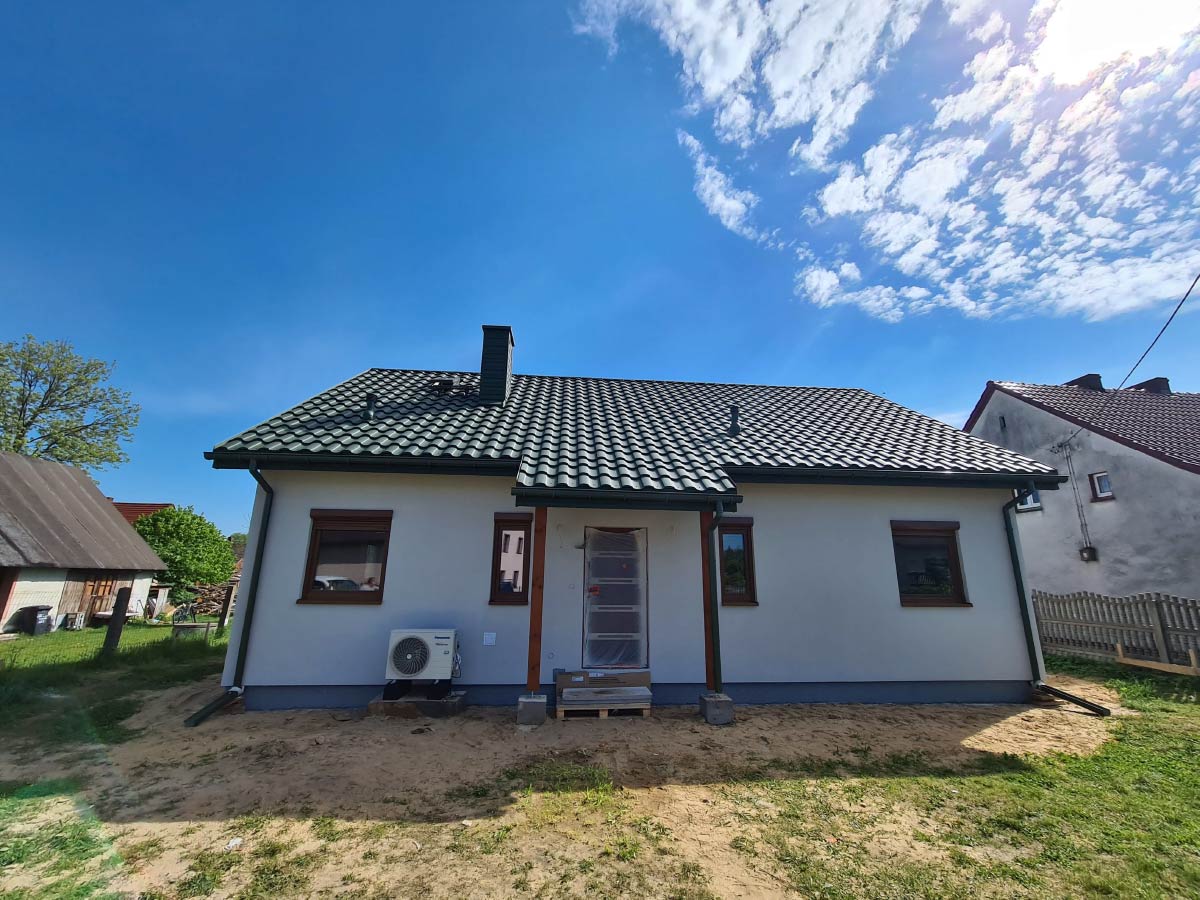 Inwestycja obejmowała wybudowanie domu szkieletowego parterowego o metrażu 82,65m2 w miejscowości Tworóg. Projekt domu zakładał 3 pokoje i łazienkę. Budowę domu zakończyliśmy w roku 2021 w stanie deweloperskim. Inwestycja wzorowana na wzór projektu Porto I.