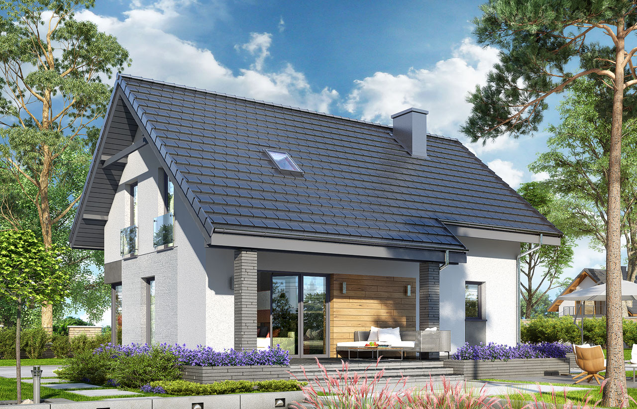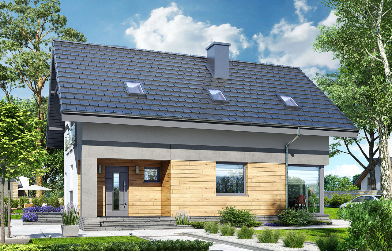 Projekt domu w technologii drewnianej szkieletowej.