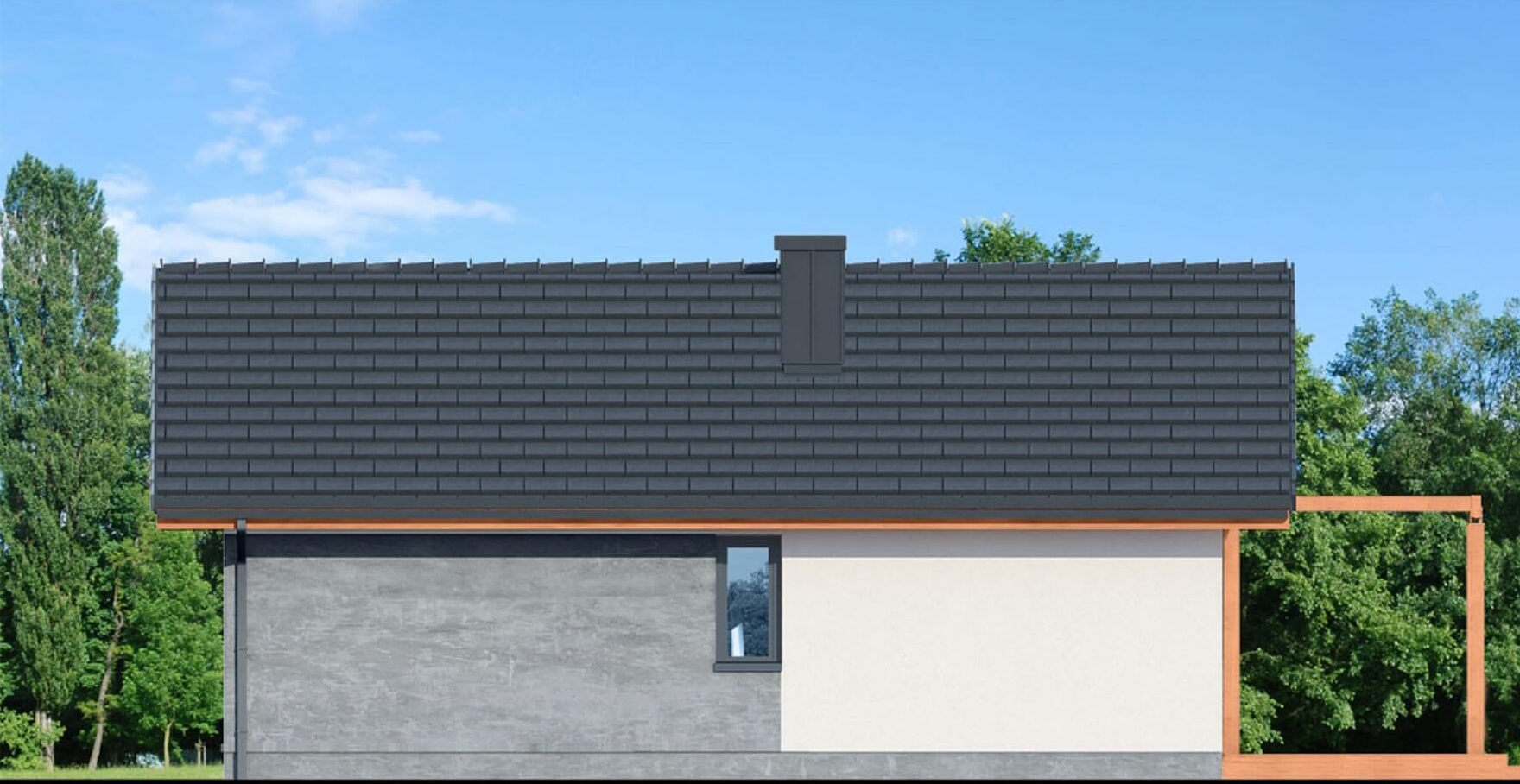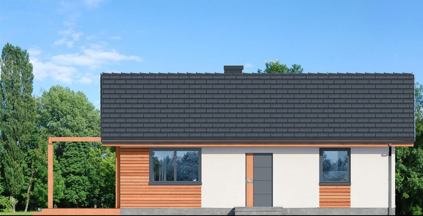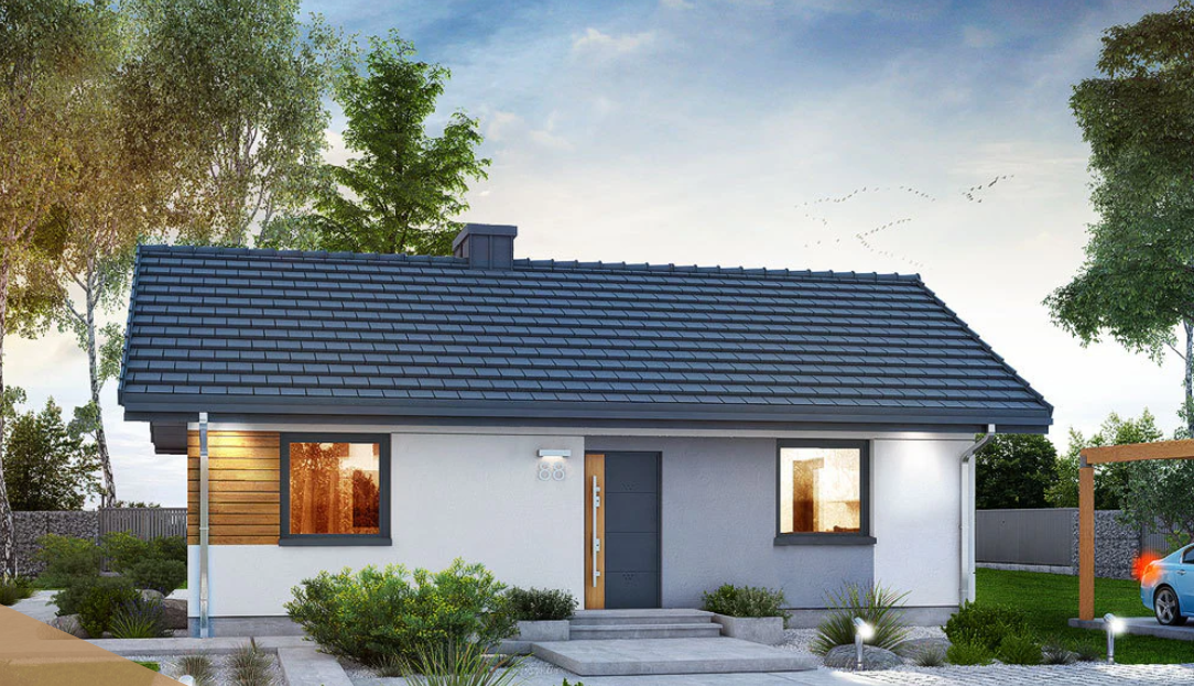 Oferujemy przytulny, nowoczesny dom parterowy o racjonalnie zagospodarowanej przestrzeni wewnętrznej. Efektowny wygląd zewnętrzny to zasługa pięknego połączenia materiałów i kolorów, które podkreślają charakter domu.