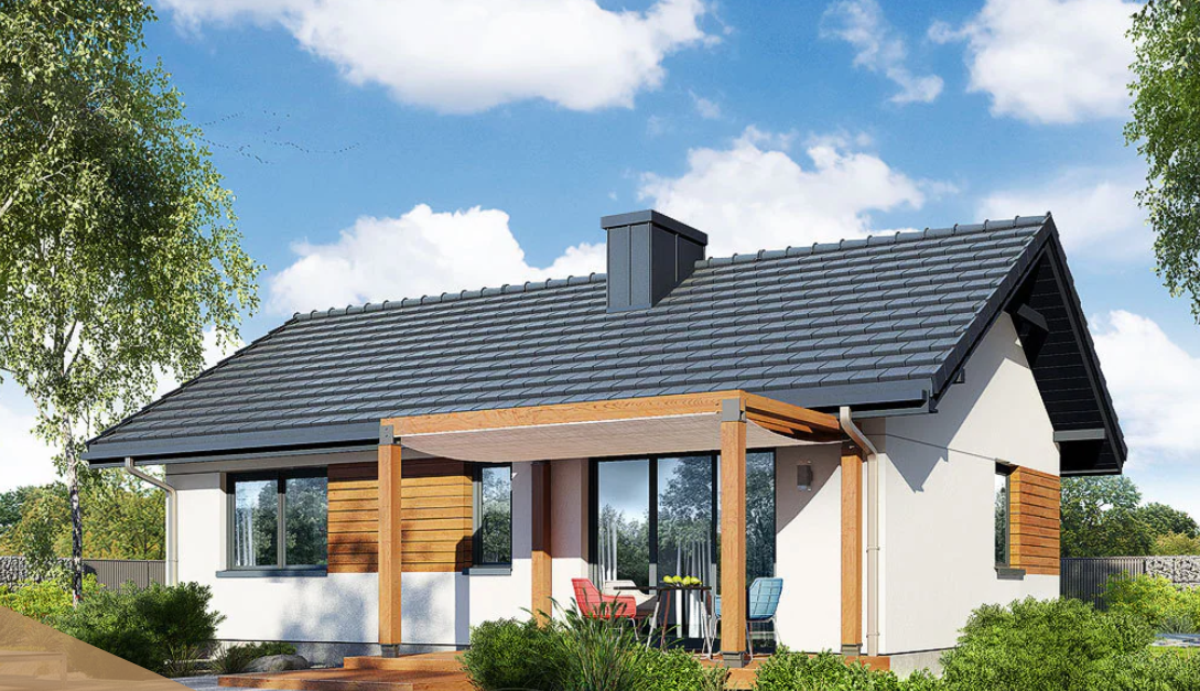 Projekt domu w technologii drewnianej szkieletowej.