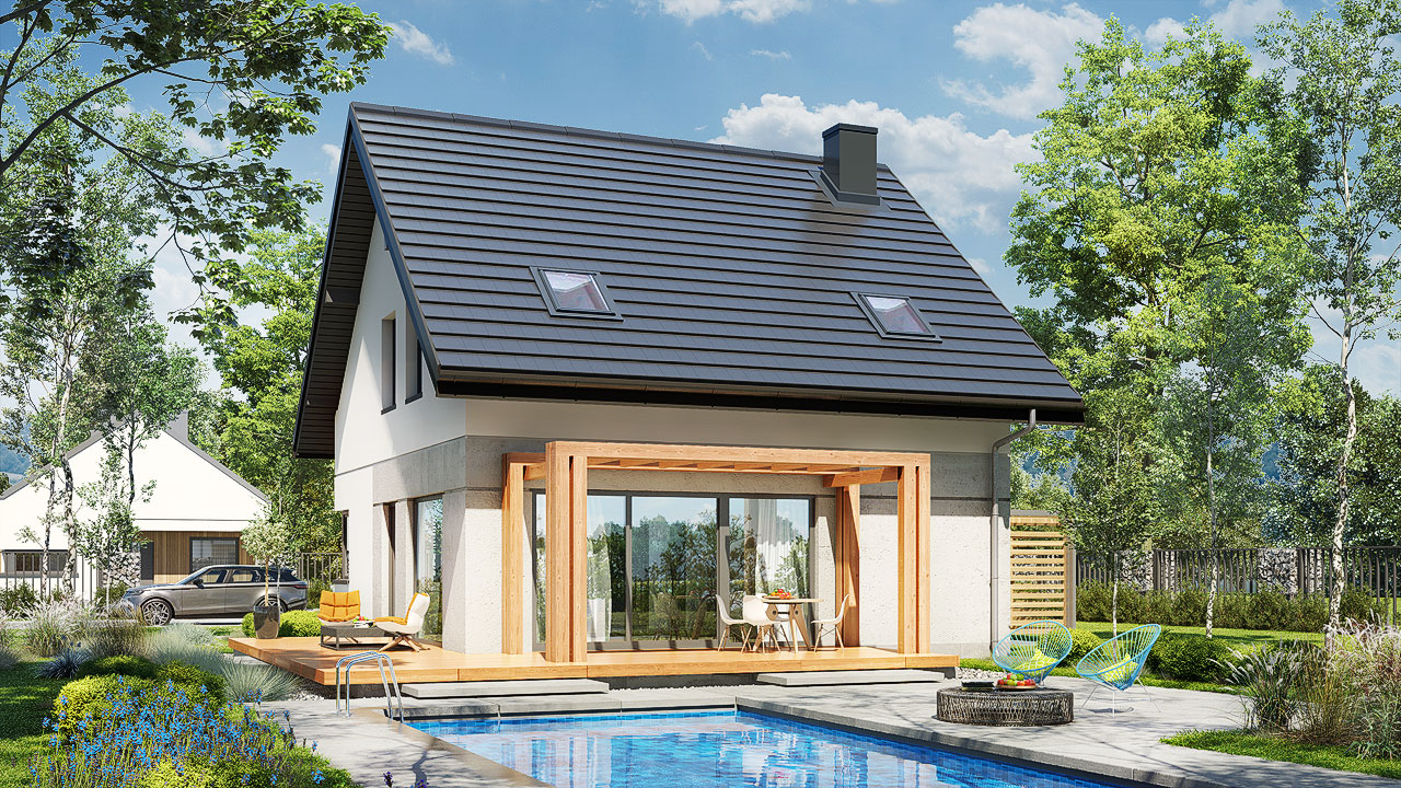 Galeria zdjęć Więcej zdjęć Opis projektu Przedstawiamy funkcjonalny dom szkieletowy MDDOM 89 o powierzchni użytkowej 76,96 m² (pow. po podłodze 89,04 m²) – idealne rozwiązanie...