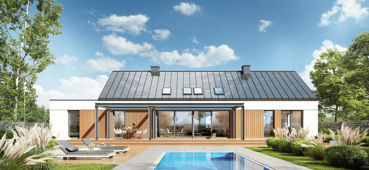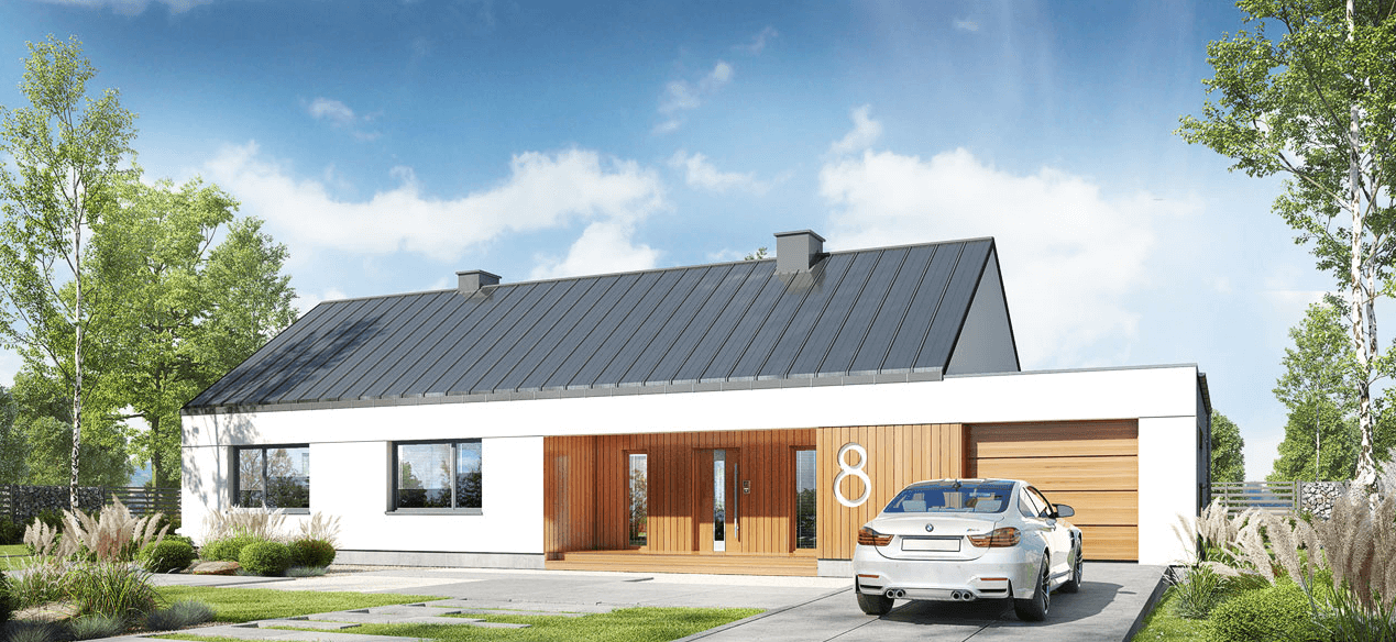 Projekt domu w technologii drewnianej szkieletowej.