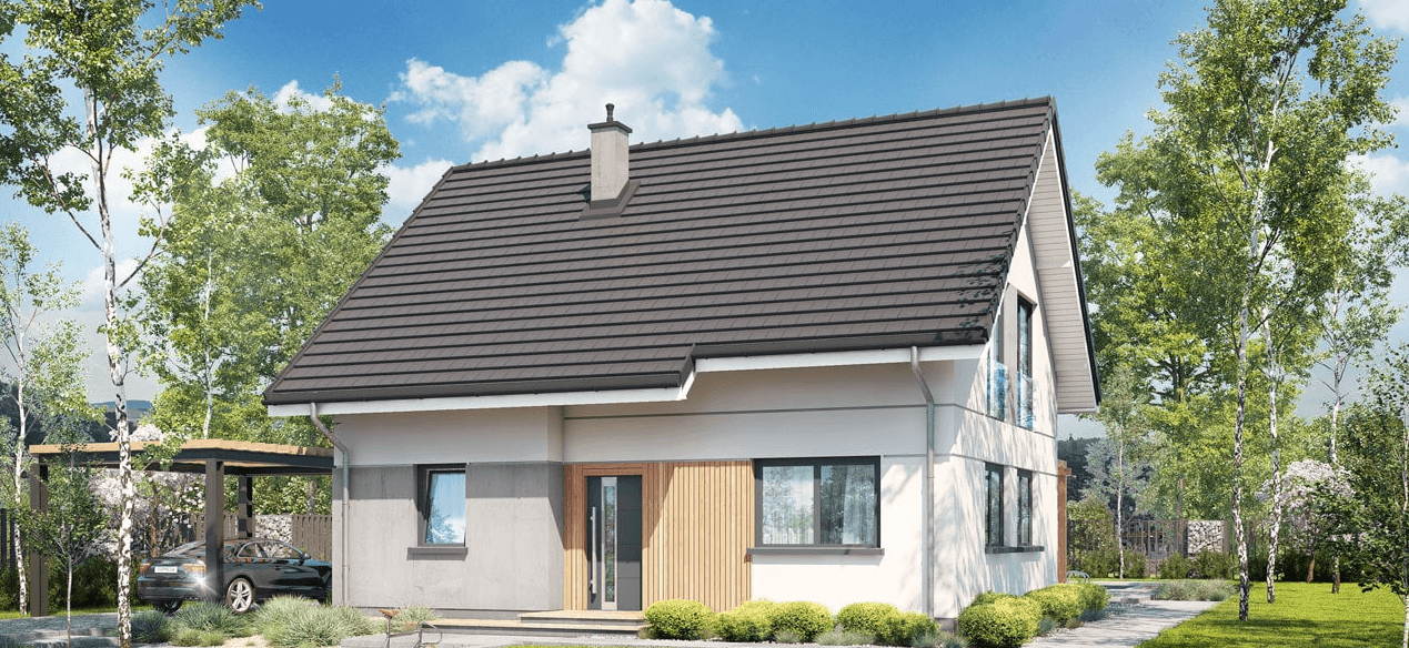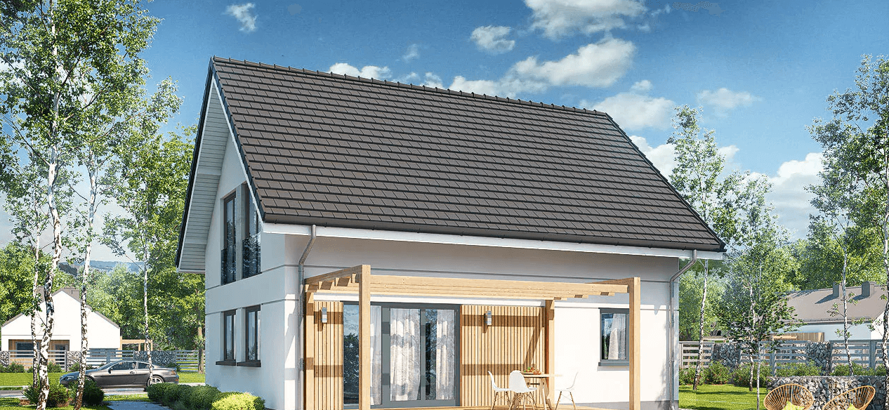 Projekt domu w technologii drewnianej szkieletowej.