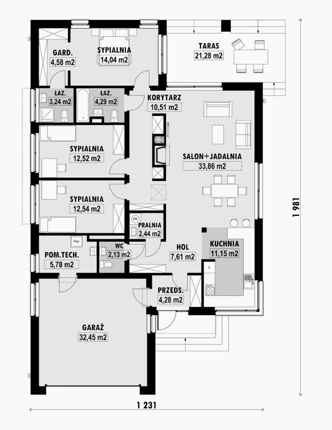 Galeria zdjęć Więcej zdjęć Opis projektu Przedstawiamy funkcjonalny dom szkieletowy MDDOM 89 o powierzchni użytkowej 76,96 m² (pow. po podłodze 89,04 m²) – idealne rozwiązanie...