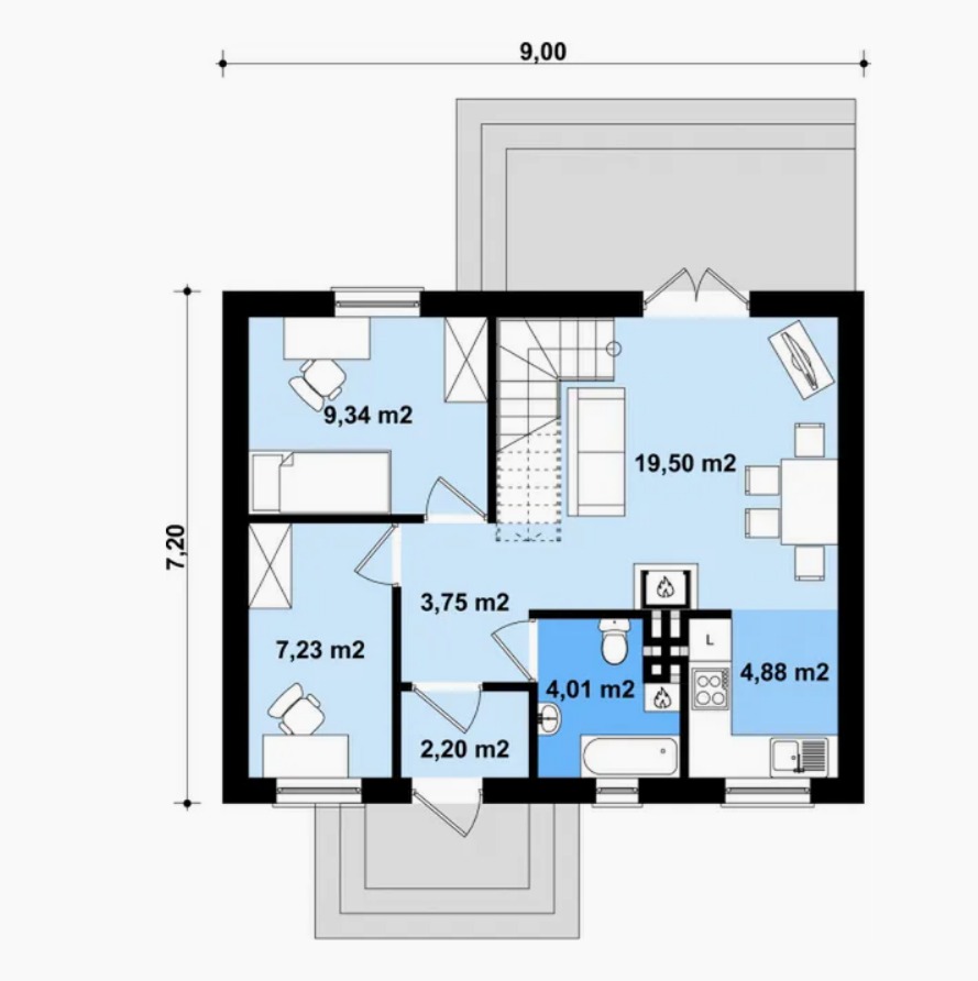 Galeria zdjęć Więcej zdjęć Opis projektu Przedstawiamy funkcjonalny dom szkieletowy MDDOM 89 o powierzchni użytkowej 76,96 m² (pow. po podłodze 89,04 m²) – idealne rozwiązanie...