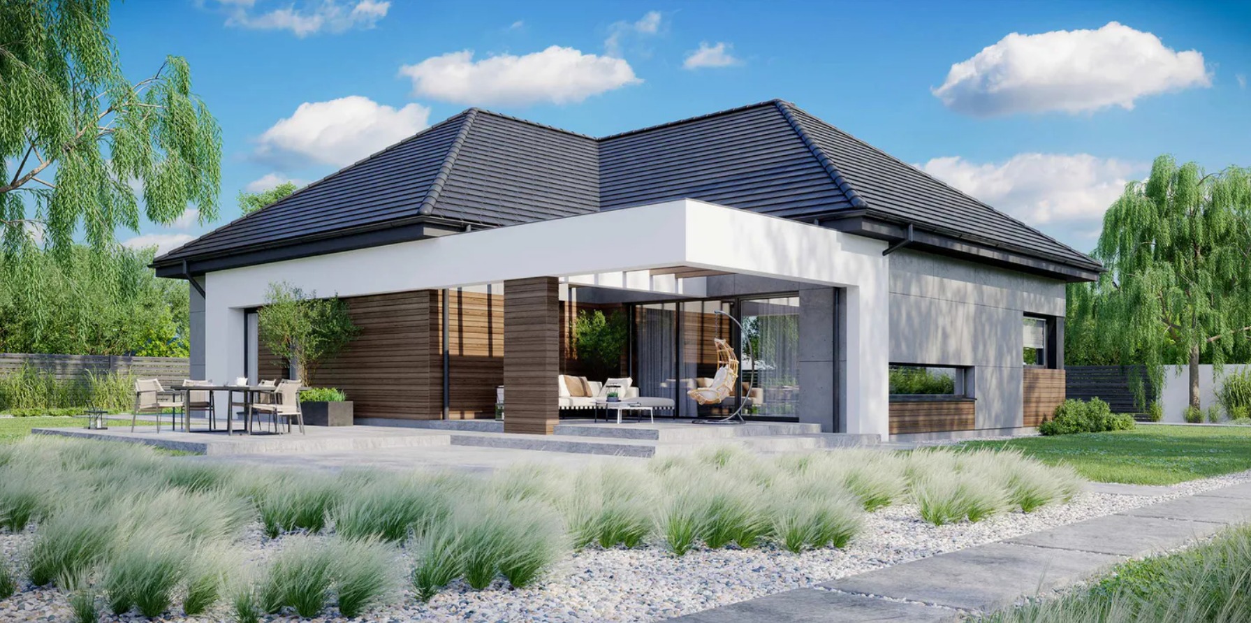 Galeria zdjęć Więcej zdjęć Opis projektu Inwestycja obejmowała wybudowanie domu szkieletowego parterowego o metrażu 100m2 w miejscowości Katowice. Projekt domu zakładał 2 pokoje i łazienkę....