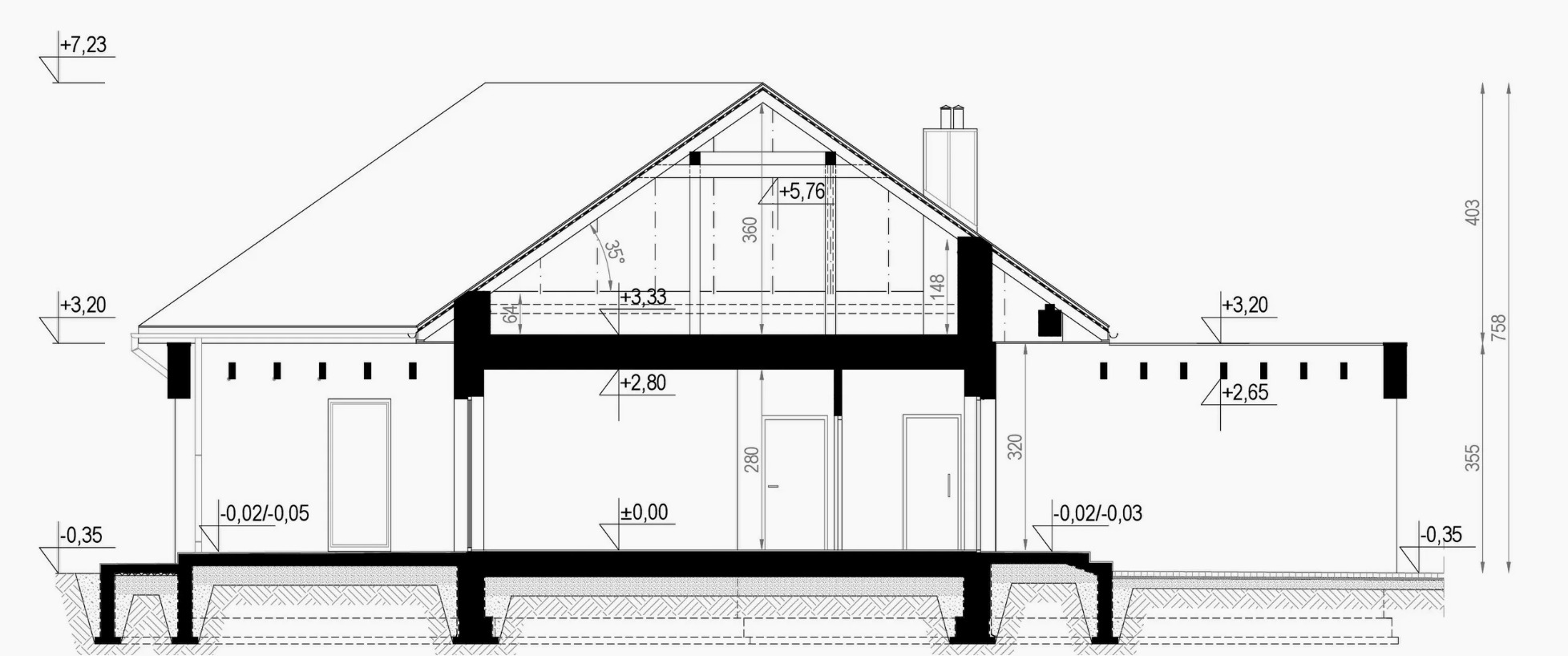 Galeria zdjęć Więcej zdjęć Opis projektu Inwestycja obejmowała wybudowanie domu szkieletowego parterowego o metrażu 82,65m2 w miejscowości Tworóg. Projekt domu zakładał 3 pokoje i łazienkę....