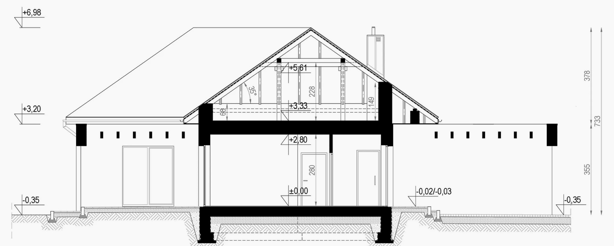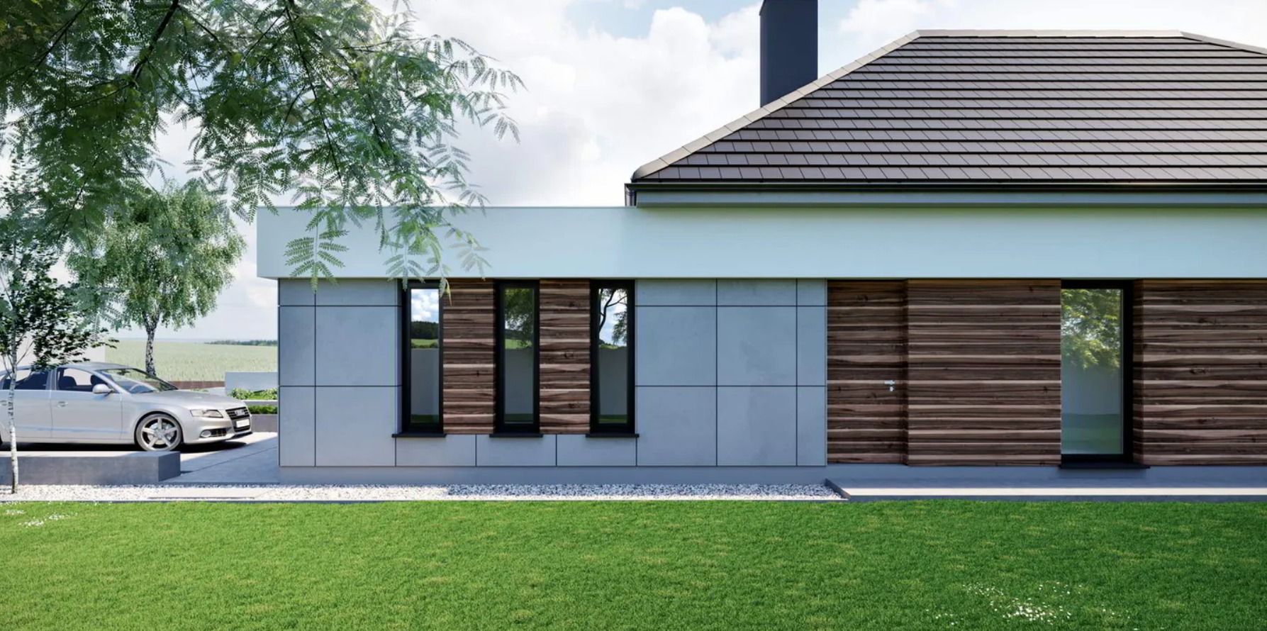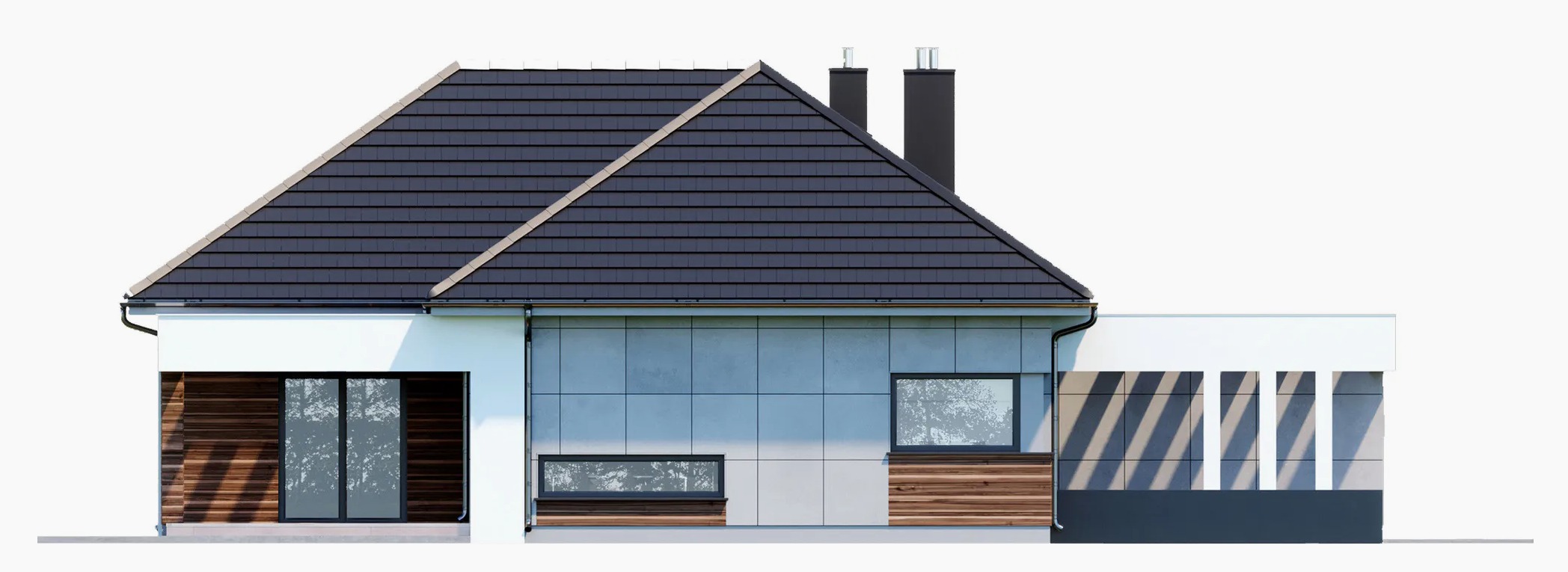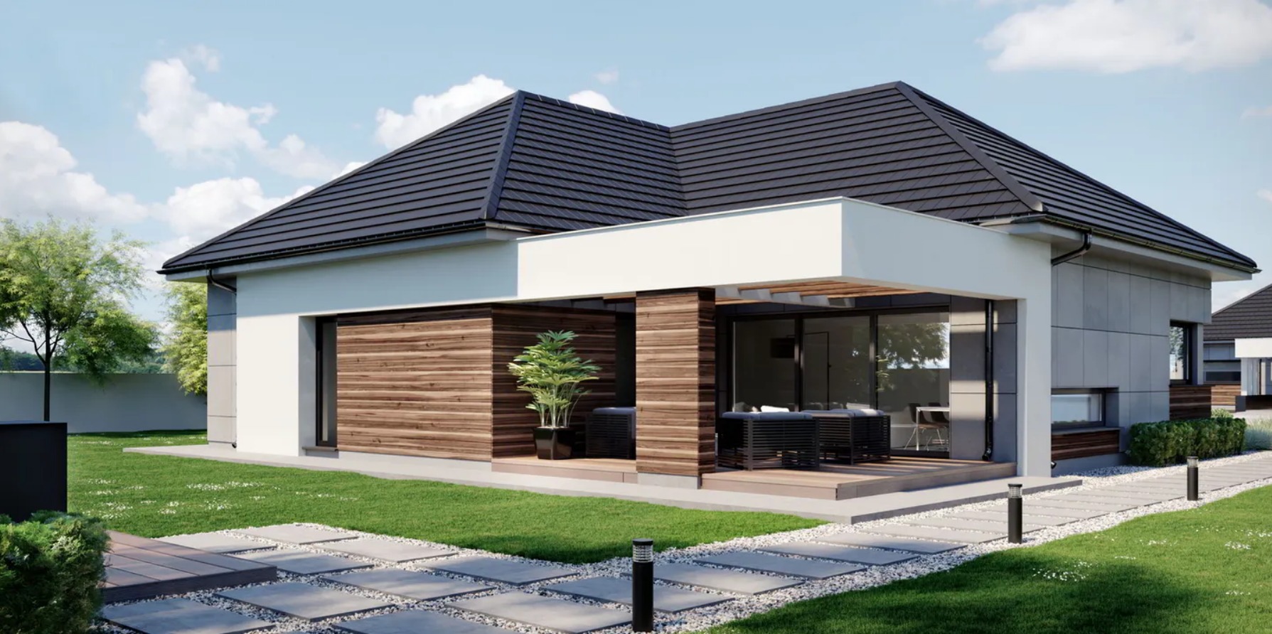Projekt domu w technologii drewnianej szkieletowej.