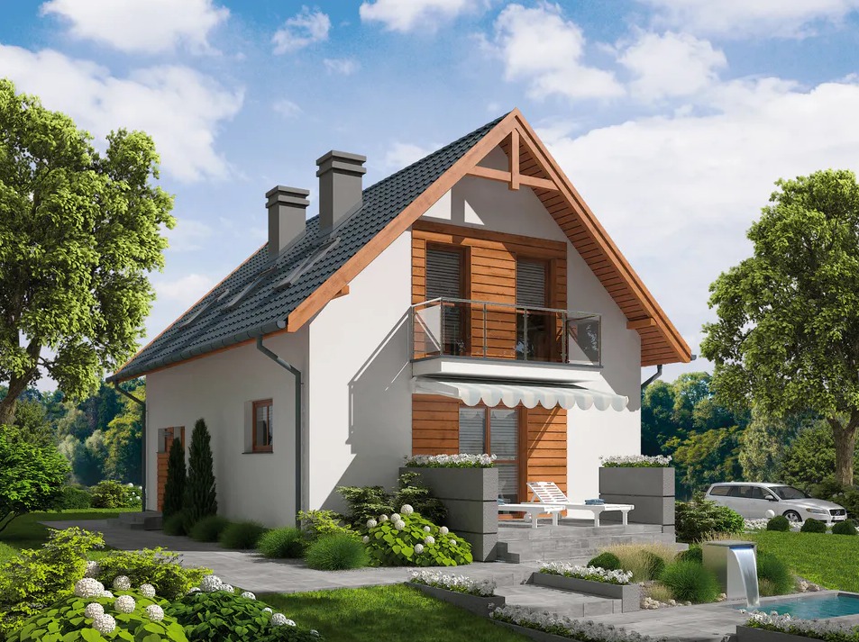 Projekt domu w technologii drewnianej szkieletowej.