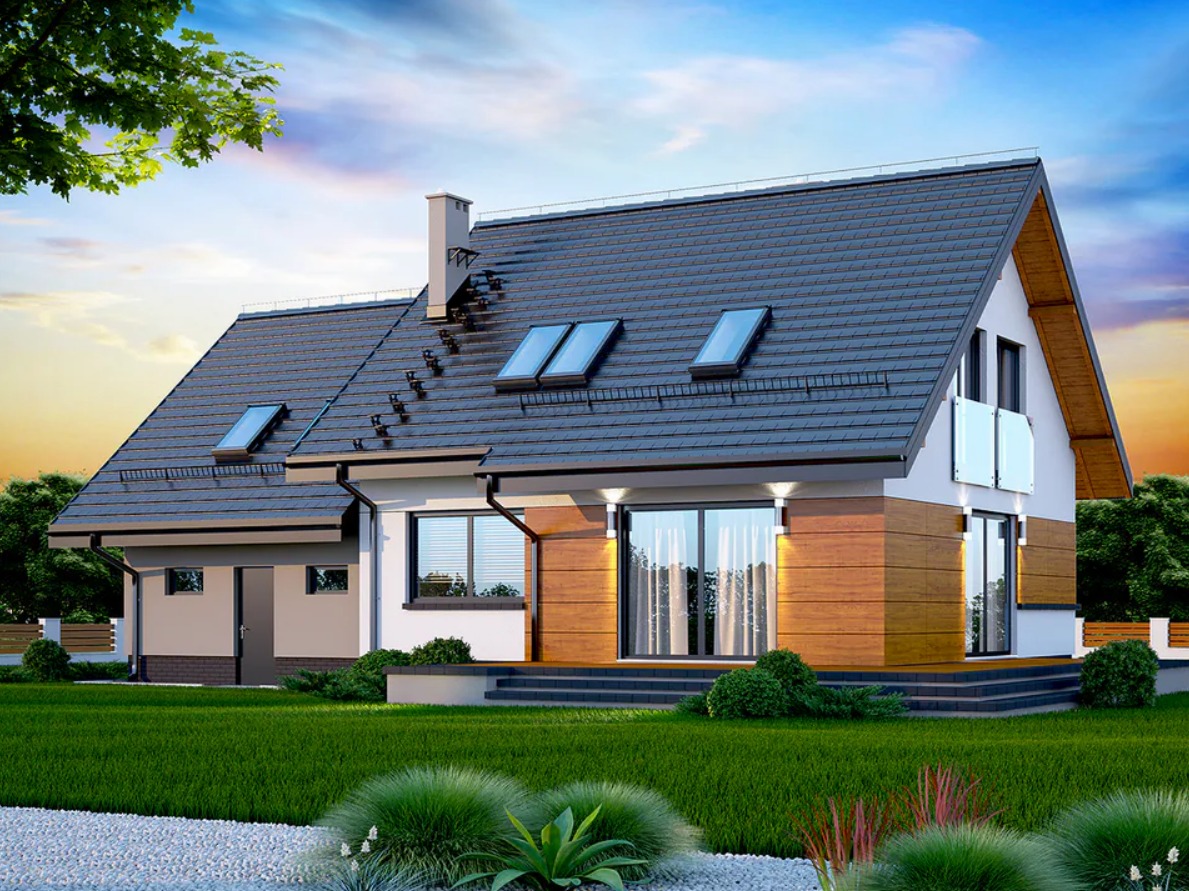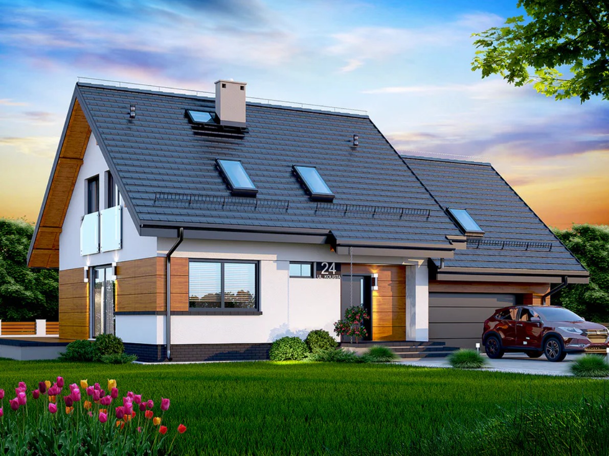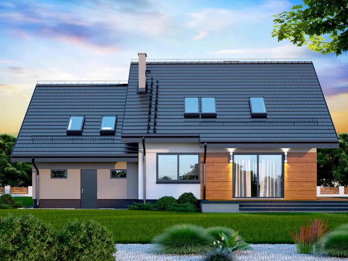 Galeria zdjęć Więcej zdjęć Opis projektu Przedstawiamy funkcjonalny dom szkieletowy MDDOM 89 o powierzchni użytkowej 76,96 m² (pow. po podłodze 89,04 m²) – idealne rozwiązanie...