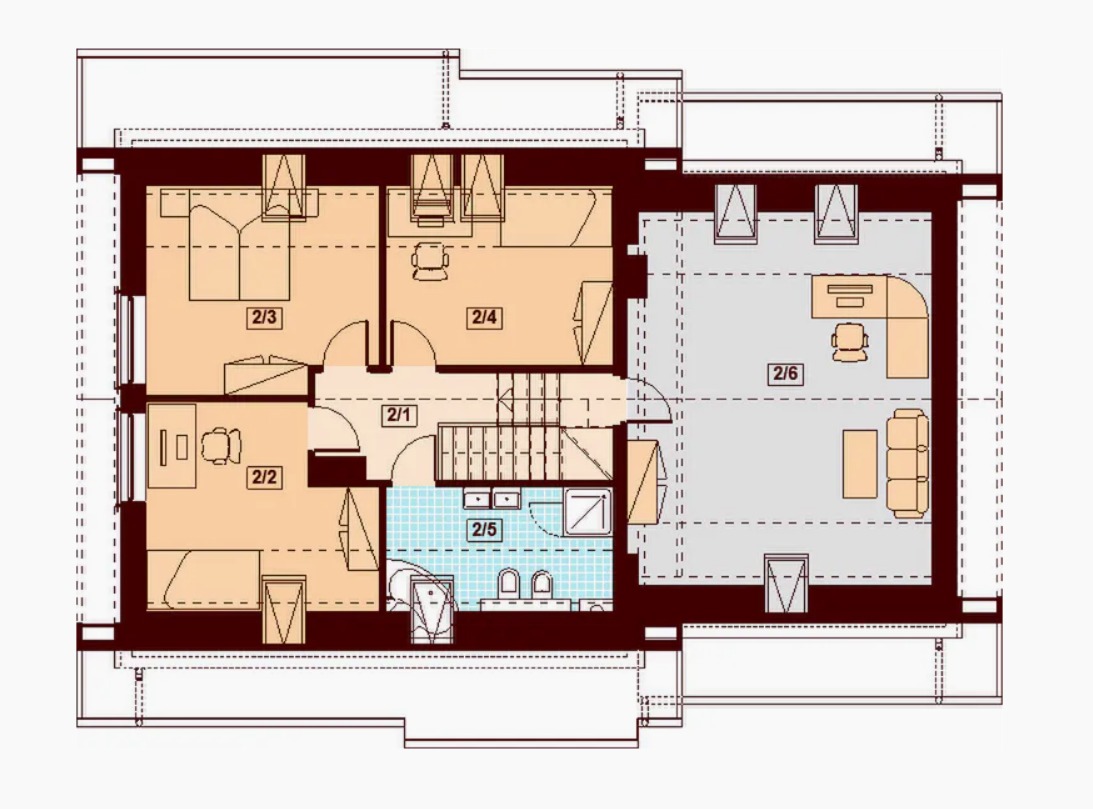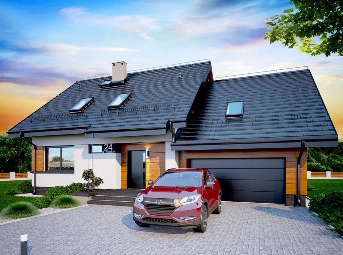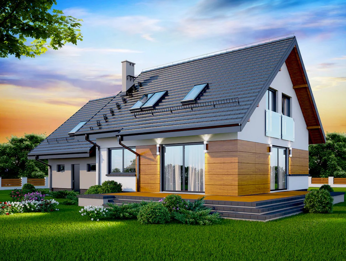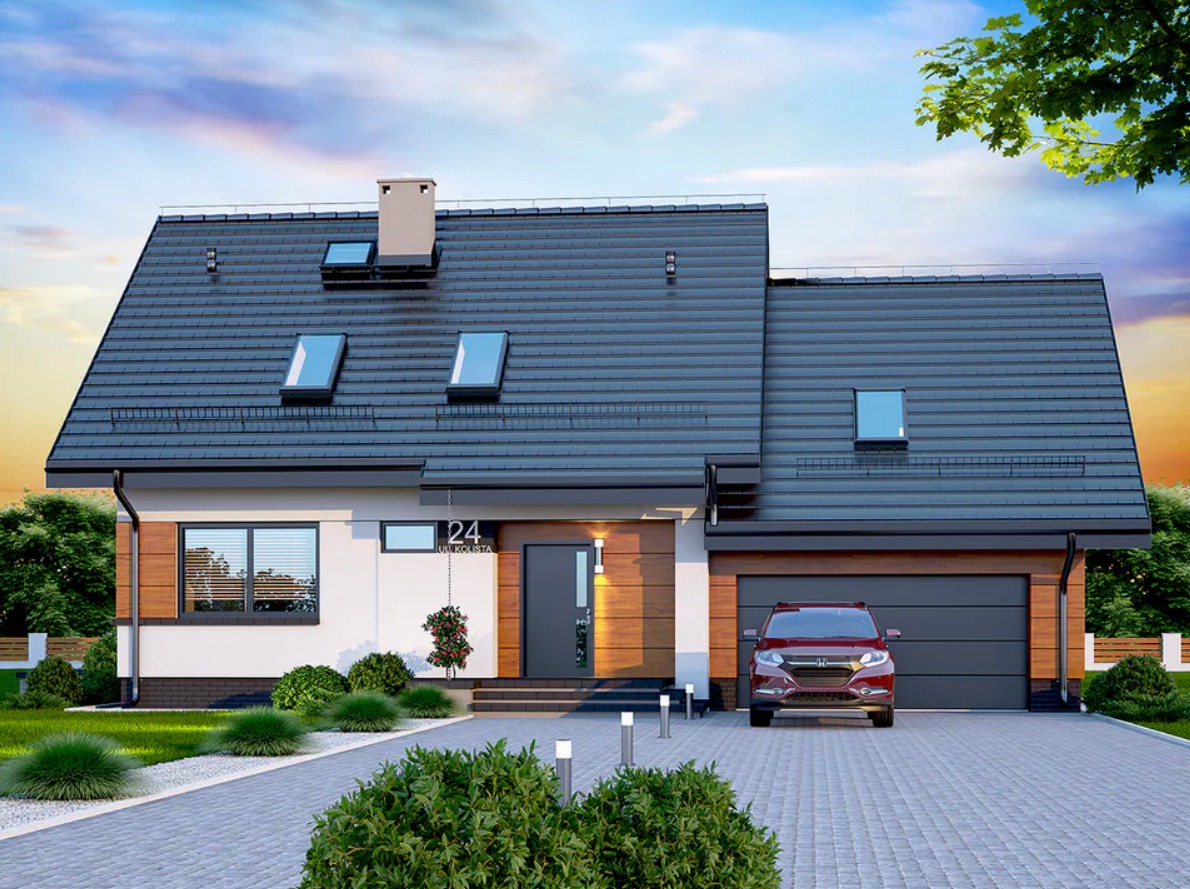 Galeria zdjęć Więcej zdjęć Opis projektu Przedstawiamy funkcjonalny dom szkieletowy MDDOM 89 o powierzchni użytkowej 76,96 m² (pow. po podłodze 89,04 m²) – idealne rozwiązanie...