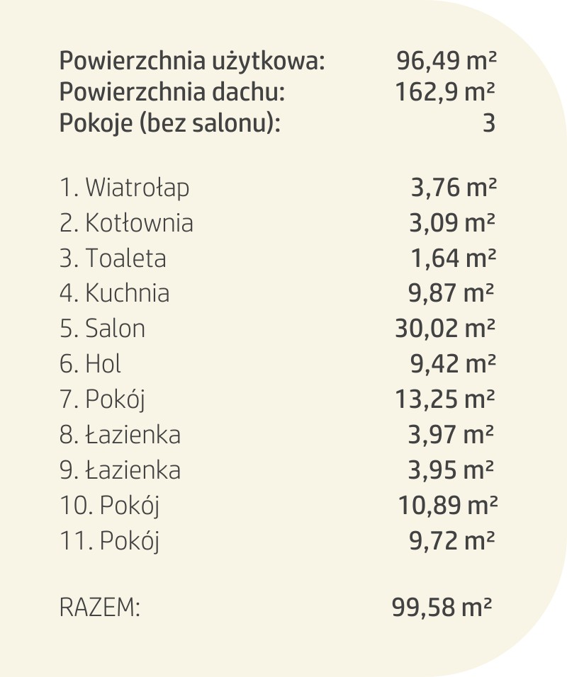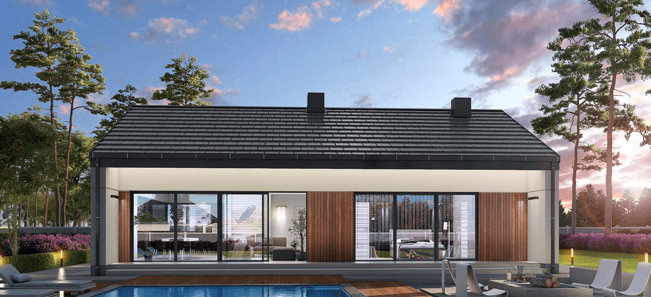 Bardzo ważna jest zastosowana technologia budowy domu szkieletowego, która gwarantuje wspaniałe warunki mieszkalne w domu parterowym oraz energooszczędność i trwałość na lata.