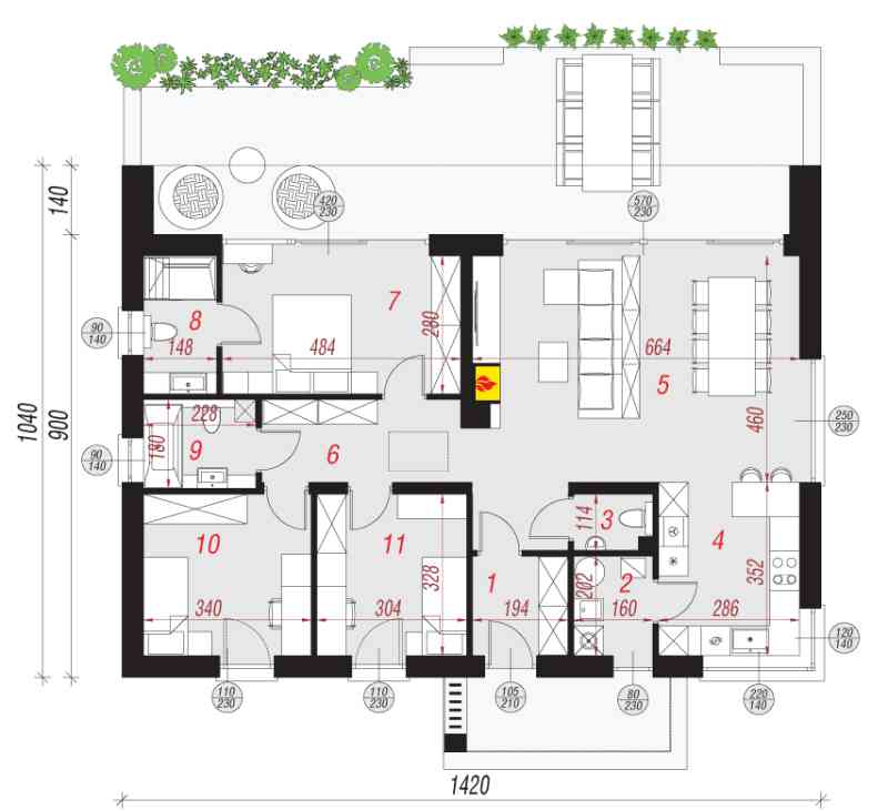 Dom w Lulo to projekt domu parterowego, który charakteryzuje się bardzo atrakcyjnym stosunkiem wielkości domu do ceny. Optymalny metraż powierzchni domu 99,58m2, dla 4 osobowej rodziny. Projekt domu Dom w Lulo zakłada Duży salon z jadalnią, otwartą kuchnią, 3 pokoje, duża łazienka oraz kotłownią.