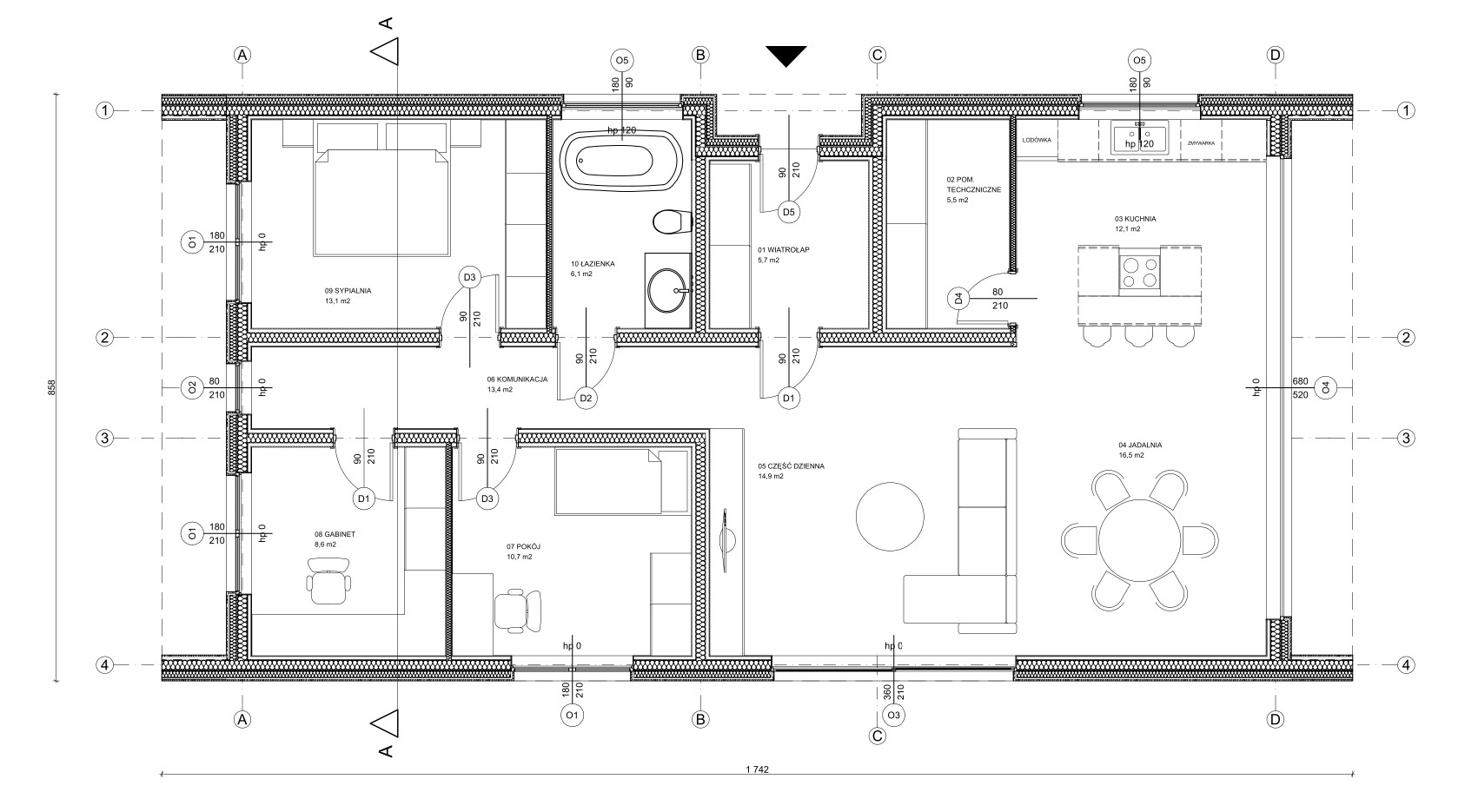 MDDOM 105 to energooszczędny dom budowany w technologii szkieletowej MDDOM®.