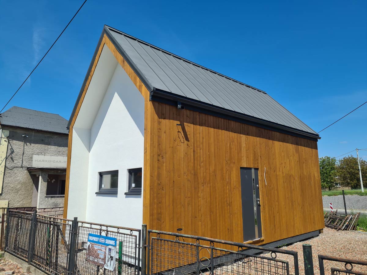 Jest to dom z poddaszem użytkowym w konstrukcji nowoczesnej stodoły, który jest ciekawą alternatywą dla mieszkania w bloku.