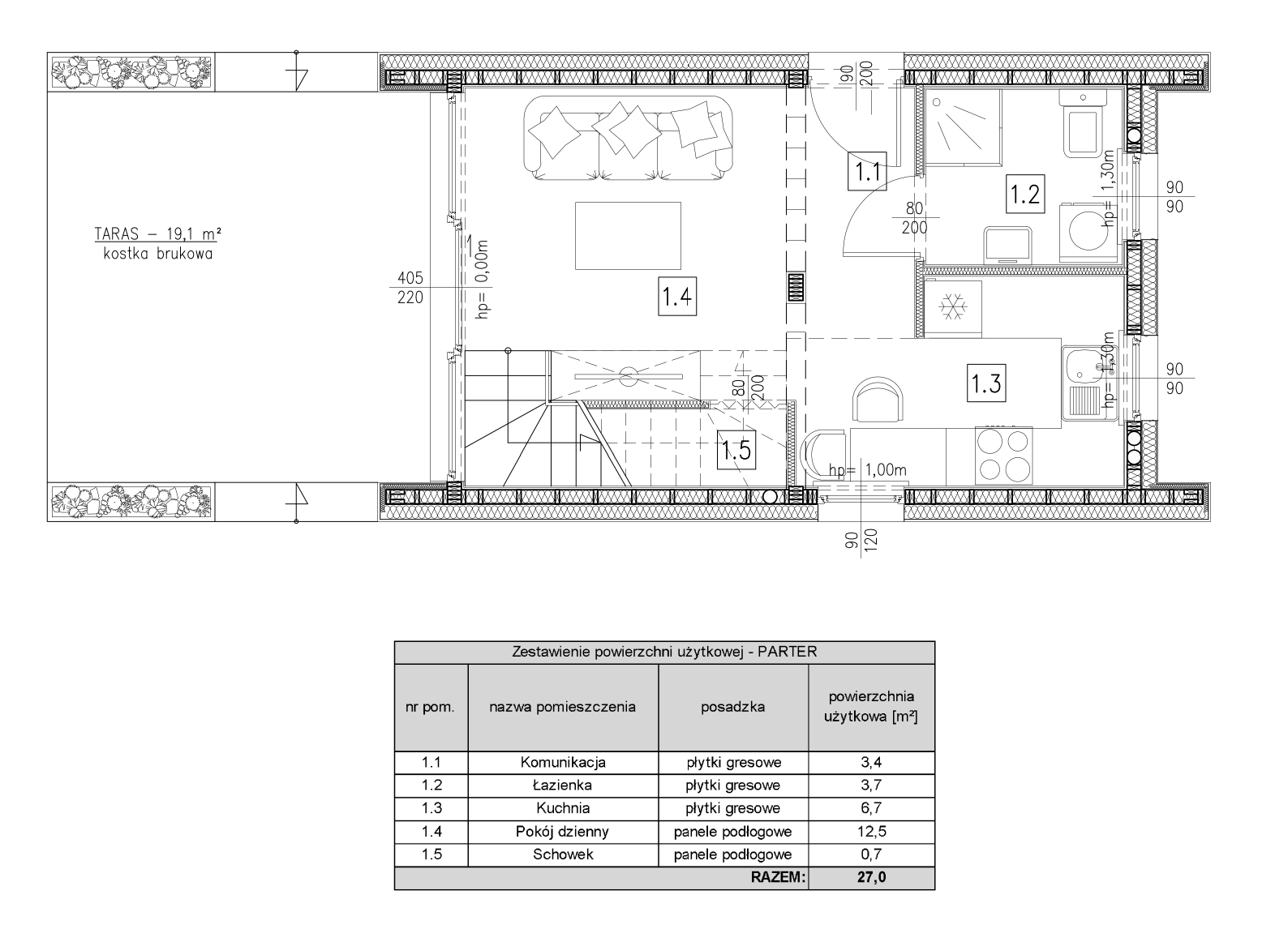 Wymiary zewnętrzne: 4,9 x 8,7 m