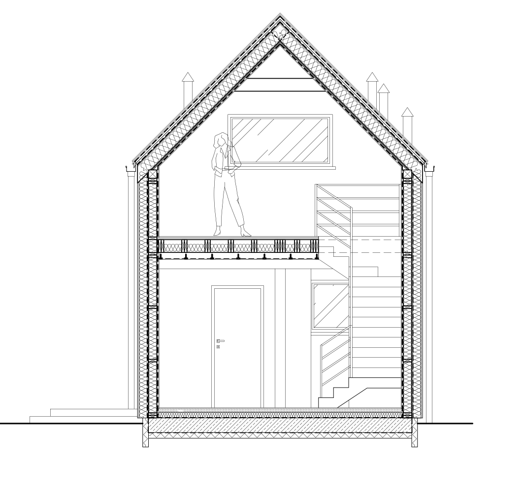 Projekt MDDOM 50 jest domem całorocznym. Wewnątrz, na parterze, przewidziany jest przestronny salon z częściowo dołączoną, otwartą kuchnią oraz łazienka. Natomiast na piętrze przygotowane jest miejsce pod sypialnię lub przestronny pokój.