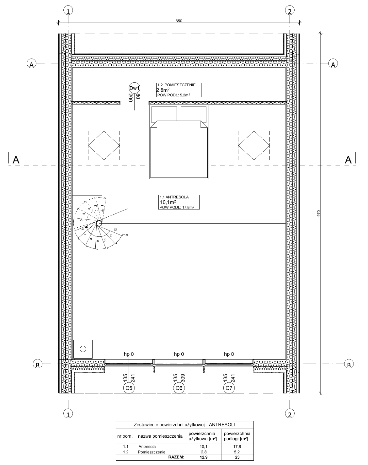 Wysokość na antresoli: 287 cm