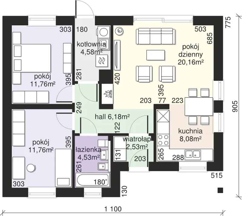 Galeria zdjęć Więcej zdjęć Opis projektu Inwestycja obejmowała wybudowanie domu szkieletowego parterowego o metrażu 52,74m2 w miejscowości Tworóg. Projekt domu zakładał 3 pokoje i łazienkę....