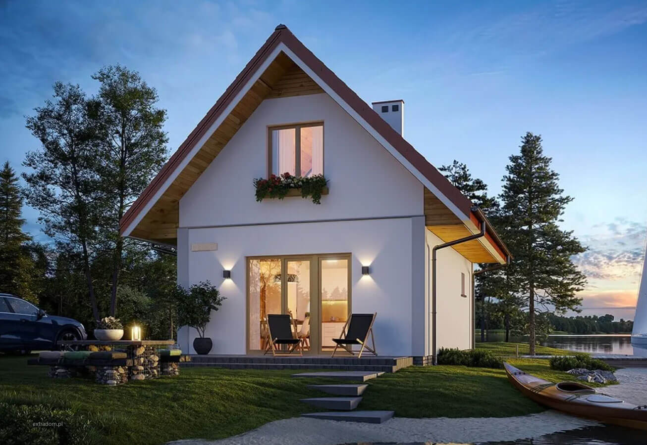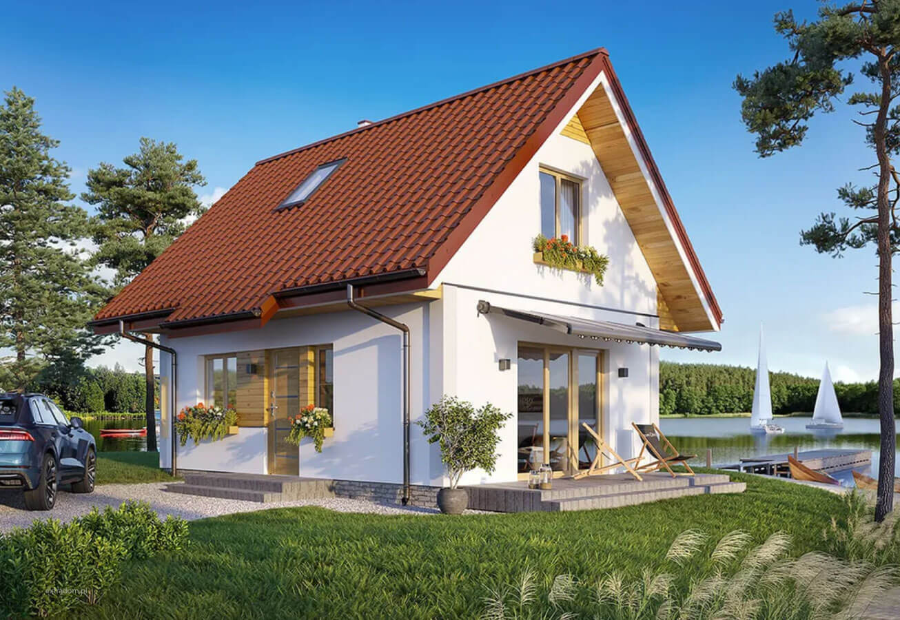 Projekt domu z poddaszem użytkowym, który spełnia potrzeby 2-4 osobowej rodziny.