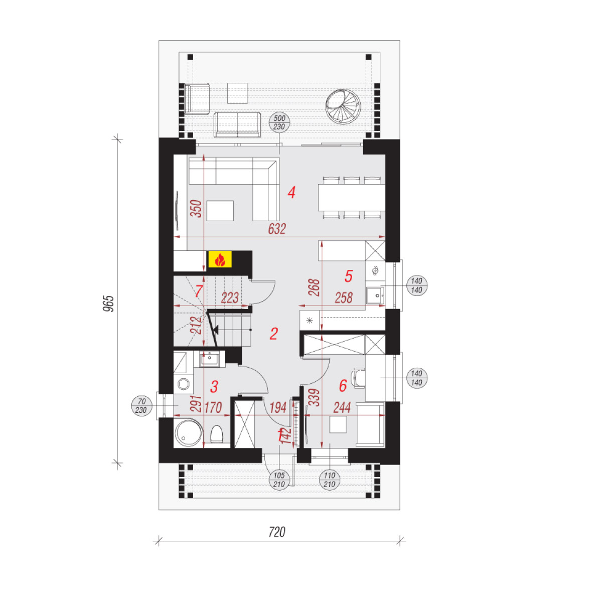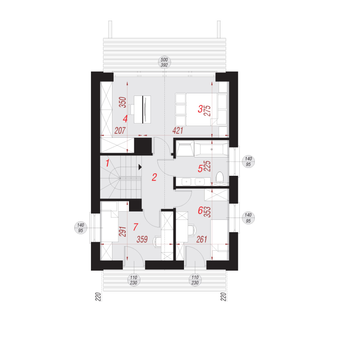 Projekt domu możliwy do wybudowania za zgłoszenie 70m2 na własny użytek. Dom w cienistkach 4 jest to dom w zabudowie do 70m2 oraz w typie nowoczesnej stodoły. Projekt domu w cienistkach 4 wyróżnia wysoka ścianka kolankowa na 2,20m. Powierzchnia domu po podłogach 102,45m2.