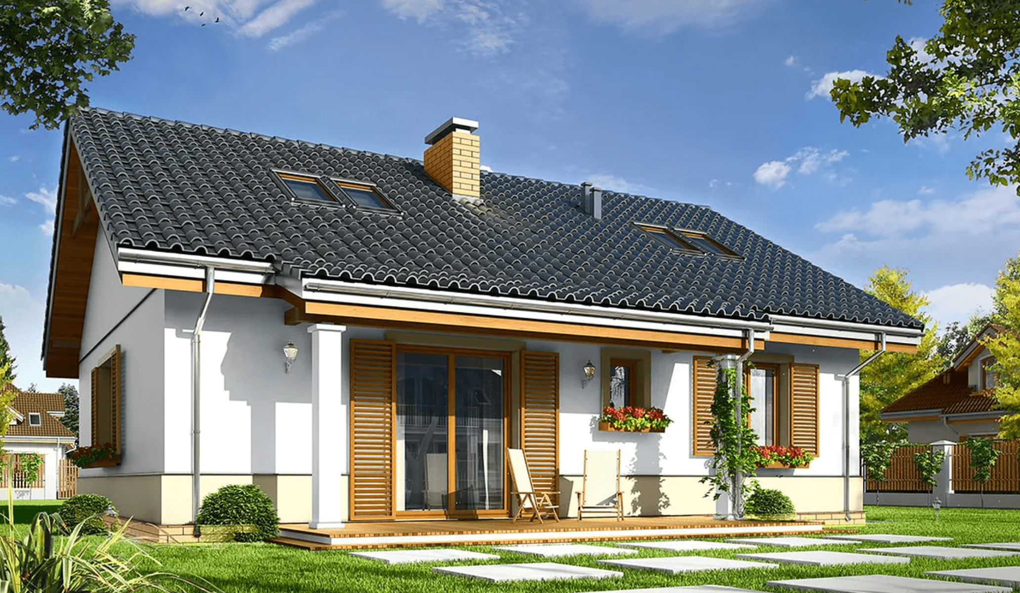Żabka 3 to projekt domu parterowego z możliwością zaadaptowania poddasza. Strefa dzienna wyraźnie oddzielona od strefy nocnej, co pozwala zachować balans życia i prywatność dla wszystkich domowników. Projekt domu żabka 3 zakłada Salon z otwartą kuchnią, 3 pokoje (sypialnie), łazienkę i osobne WC, pomieszczenie gospodarcze i pokaźny strych z możliwością jego adaptacji.