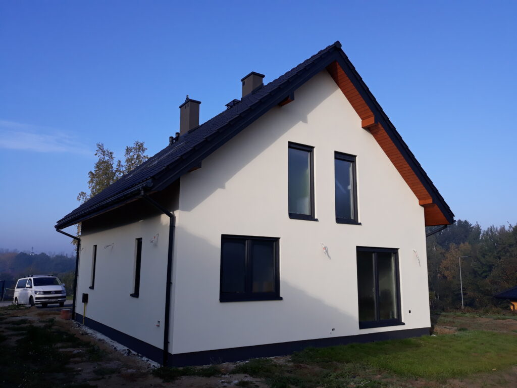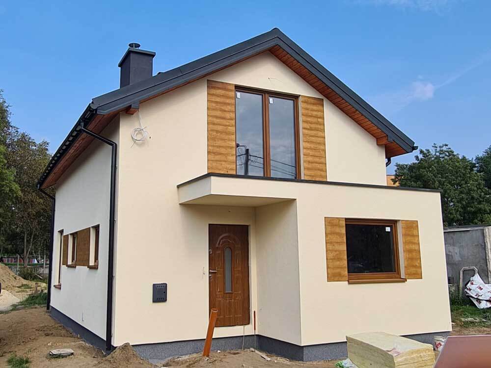 Galeria zdjęć Opis projektu Inwestycja obejmowała wybudowanie domu szkieletowego piętrowego o metrażu 116,6m2 w miejscowości Jastrzębie Zdrój. Projekt domu zakładał