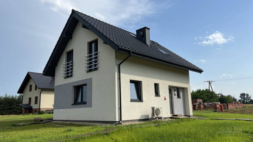 Galeria zdjęć Opis projektu Inwestycja obejmowała wybudowanie domu szkieletowego piętrowego o metrażu 81,42m2 w miejscowości Rogów. Projekt domu zakładał 2