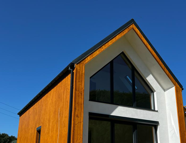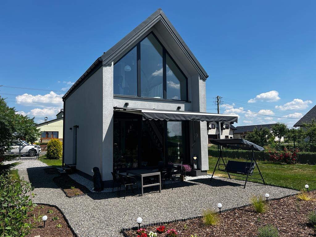 Jest to dom z poddaszem użytkowym w konstrukcji nowoczesnej stodoły, który jest ciekawą alternatywą dla mieszkania w bloku.