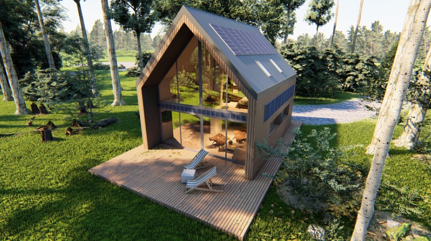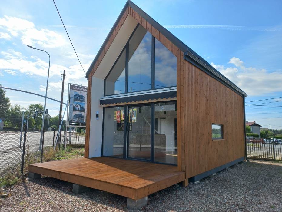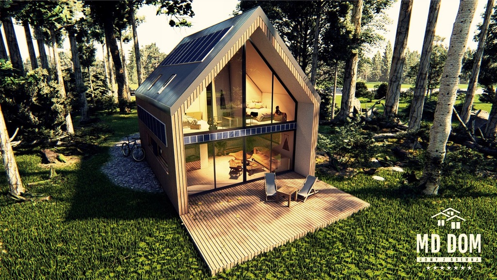 MDDOM 53 v2 jest domem całorocznym. Wewnątrz przewidziany jest przestronny salon z otwartą kuchnią oraz łazienka. Z salonu dostępne jest wyjście bezpośrednio na taras.